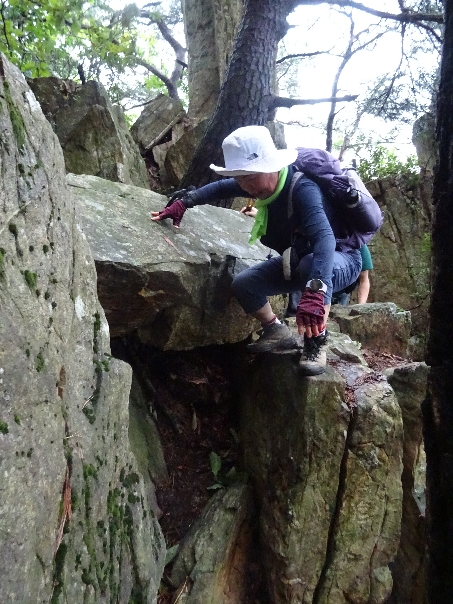 그래서 이리저리 살피다가 발견한 작은 리본을 보고 바윗길로 접어들었습니다. 발 디딜곳도 마땅찮아 무척이나 위험하군요.