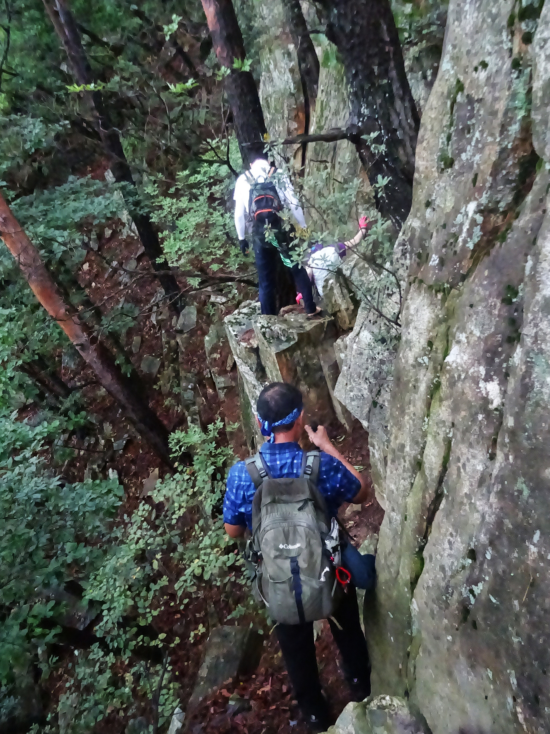 암벽을 타는 재미와 스릴을 좋아하는 일부 등산객들이 다니는 길인줄 모르고, 우리는 리본하나 달려있는 걸 보고서 잘못 접어든 겁니다.
