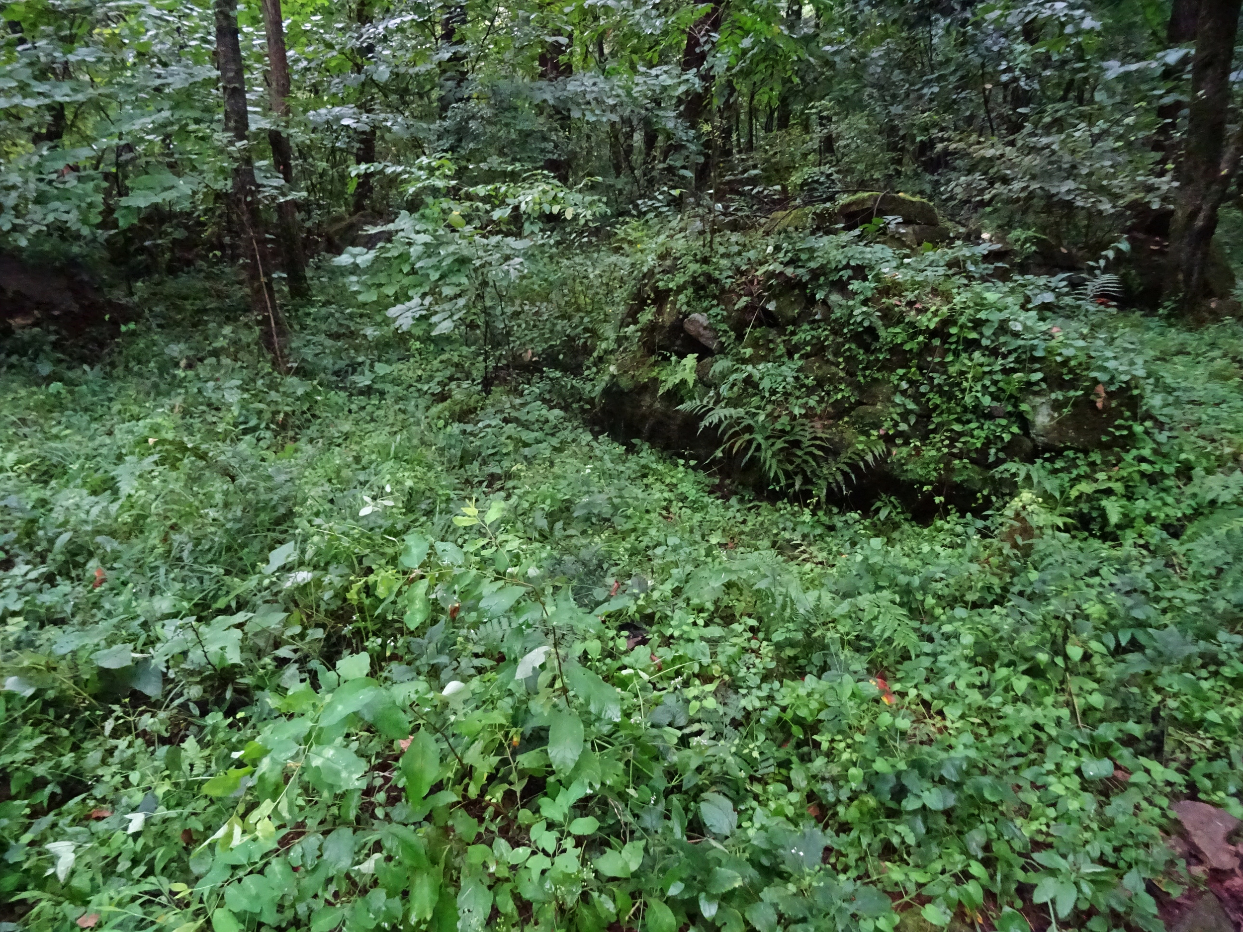화전민들이 살던 집터에는 돌담과 돌무더기가 남아 있습니다.