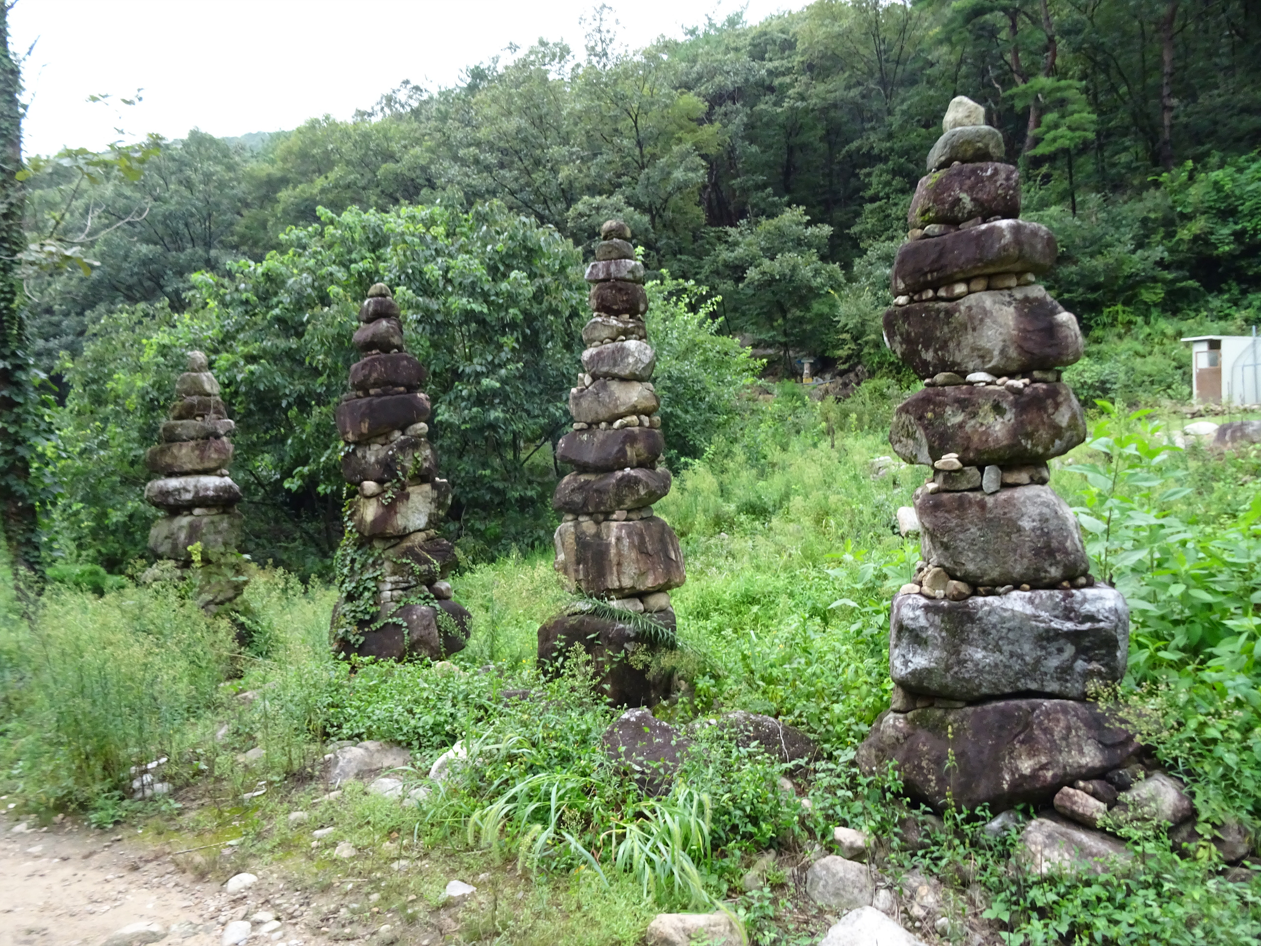 돌탑들은 돌탑앞에 있는 '금수산 얼음골 주막집' 식당 주인이 돌탑을 쌓았다는데, 지금도 돌탑 쌓는 일을 하고 있다고 해요.