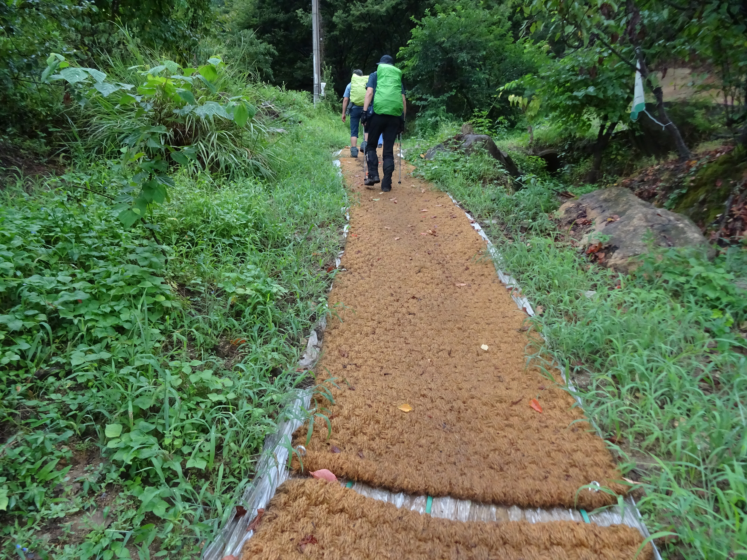 마을이 끝나는 지점에 깔아 놓은 야자매트.