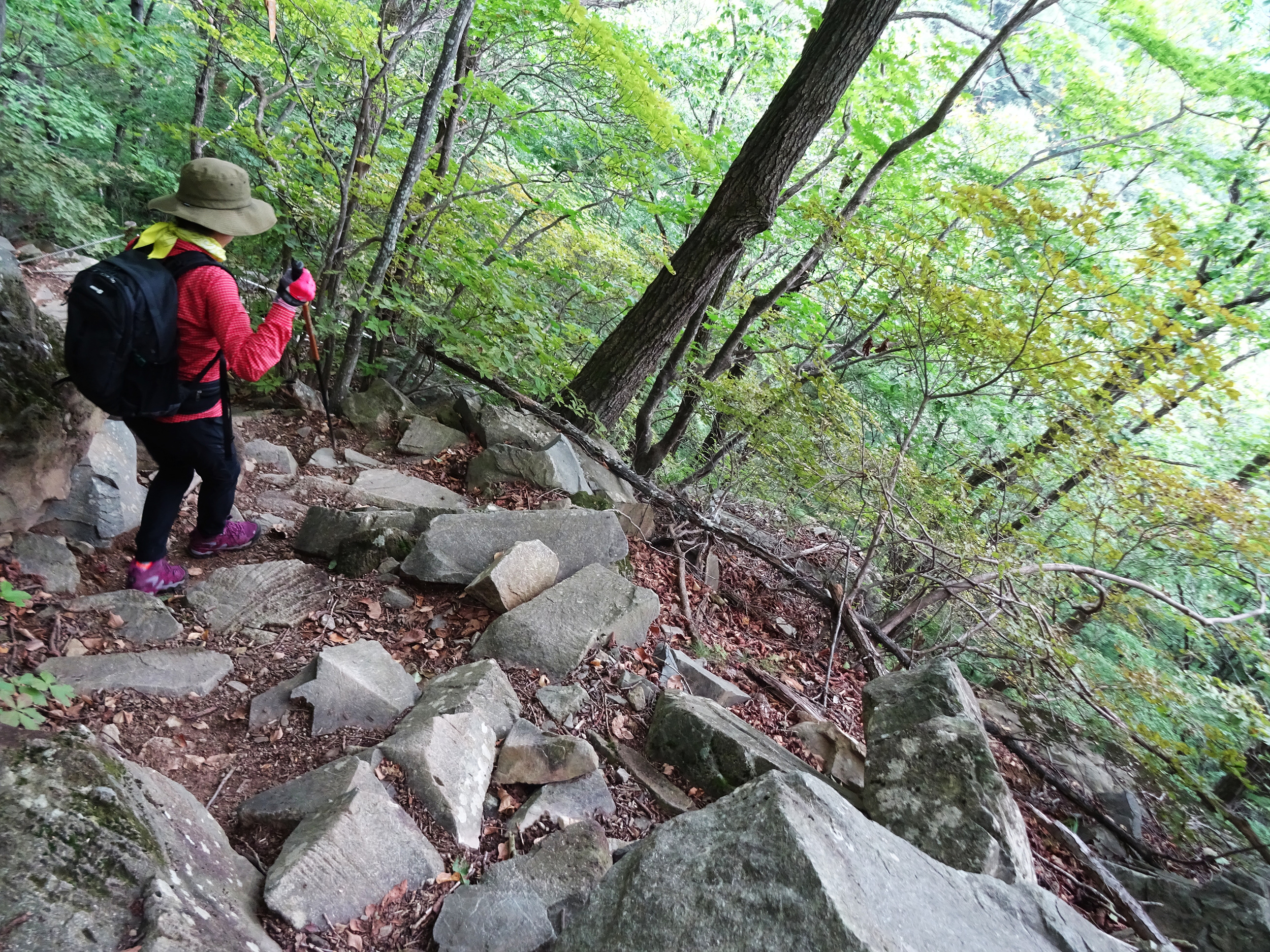 행여라도 돌부리에 걸려서 엎어질까 염려하면서 신경 바짝쓰며 내려오는 길.