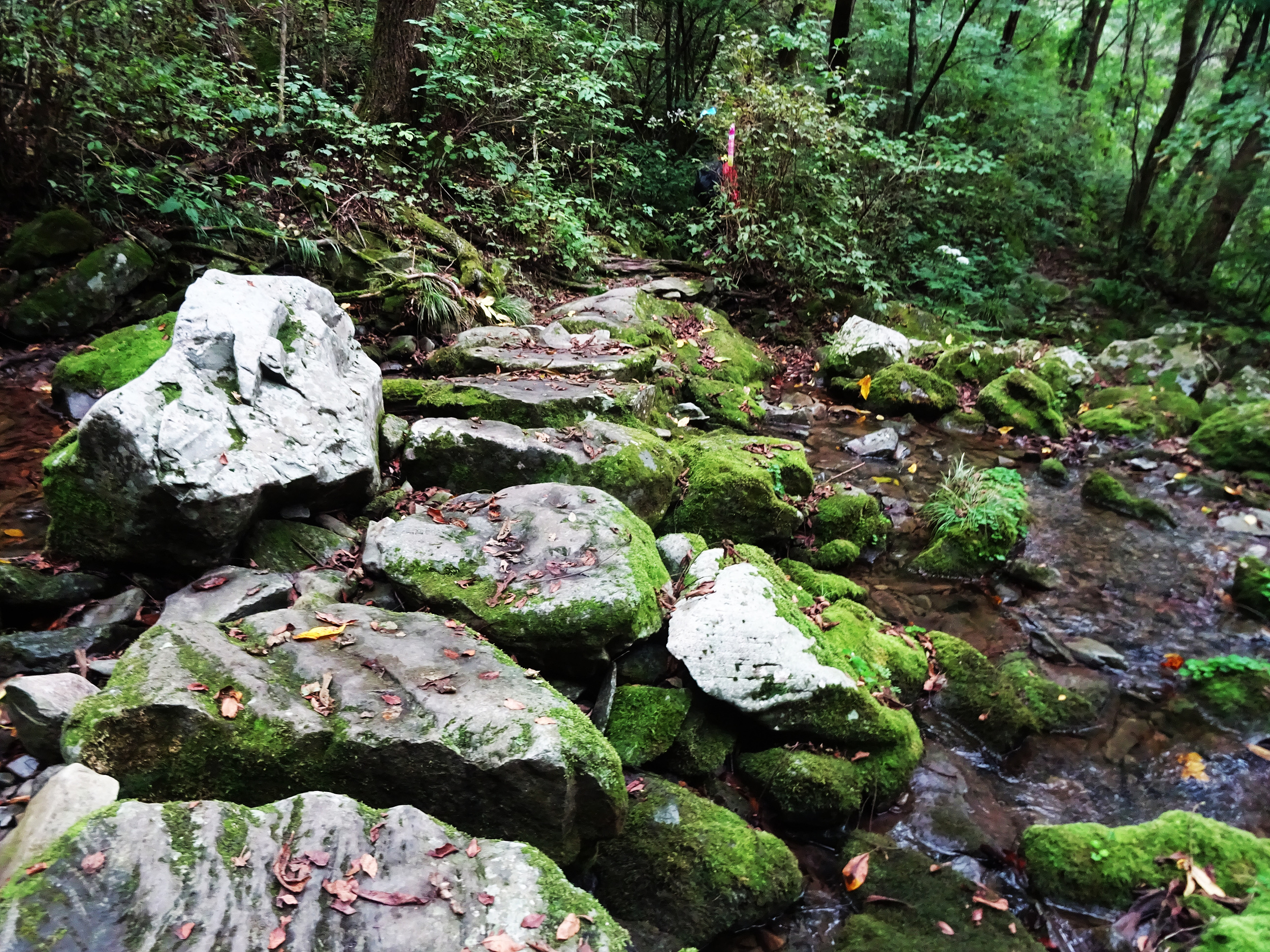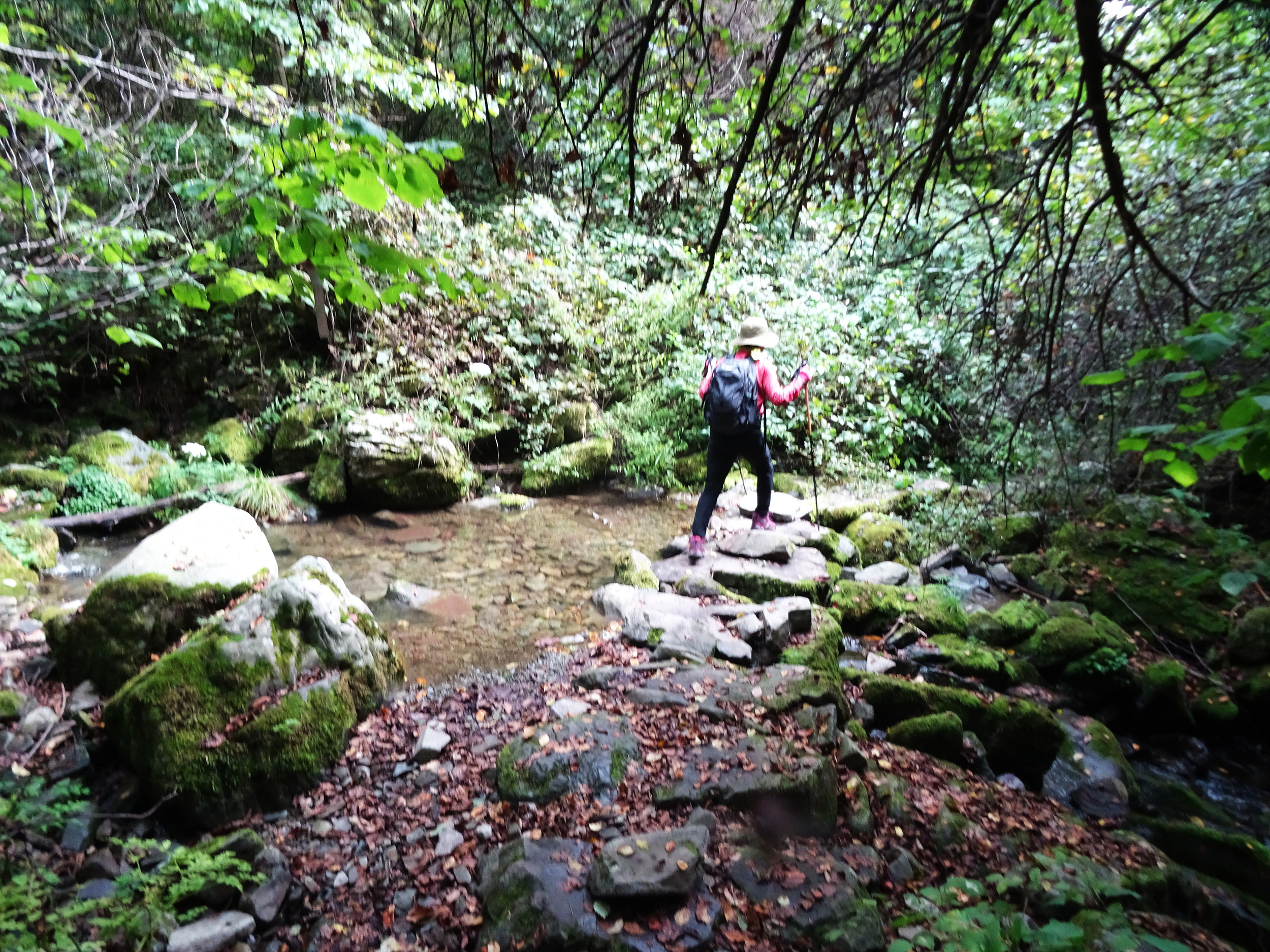 개울을 건너다 보면 길이 희미한데, 잘 살펴보면 사람들이 다닌 흔적이 있어 그걸 보며 길 찾아갑니다.