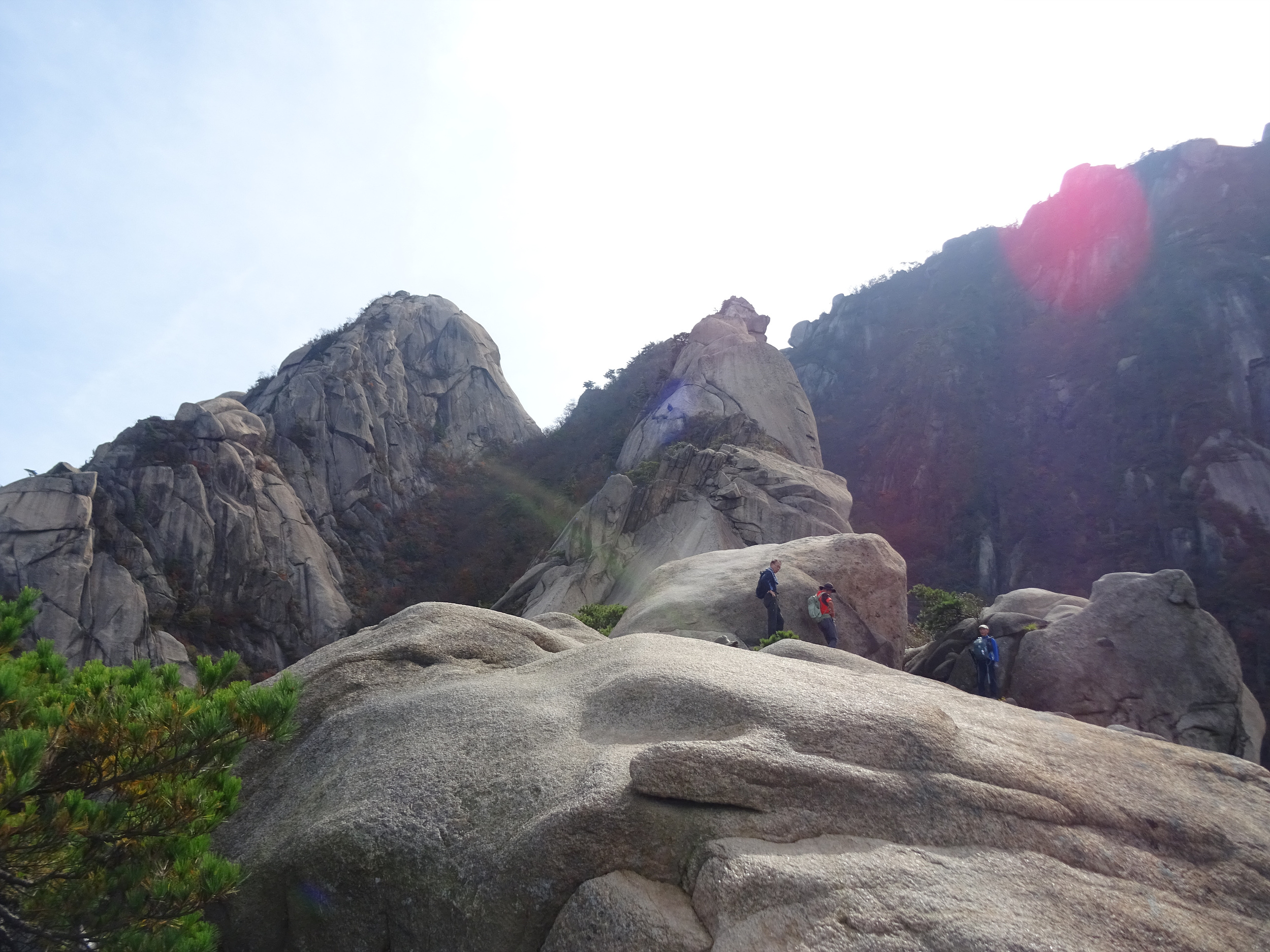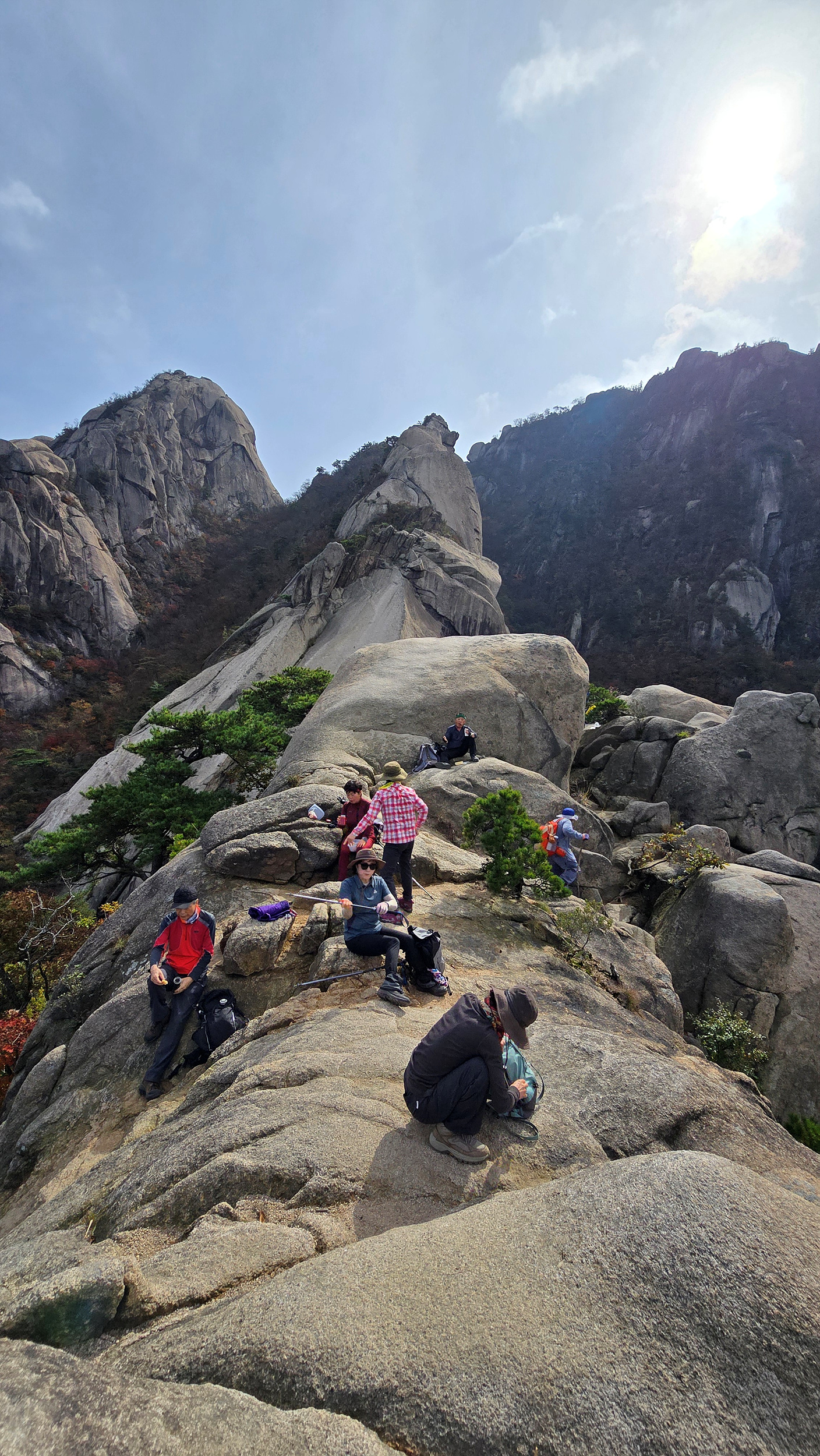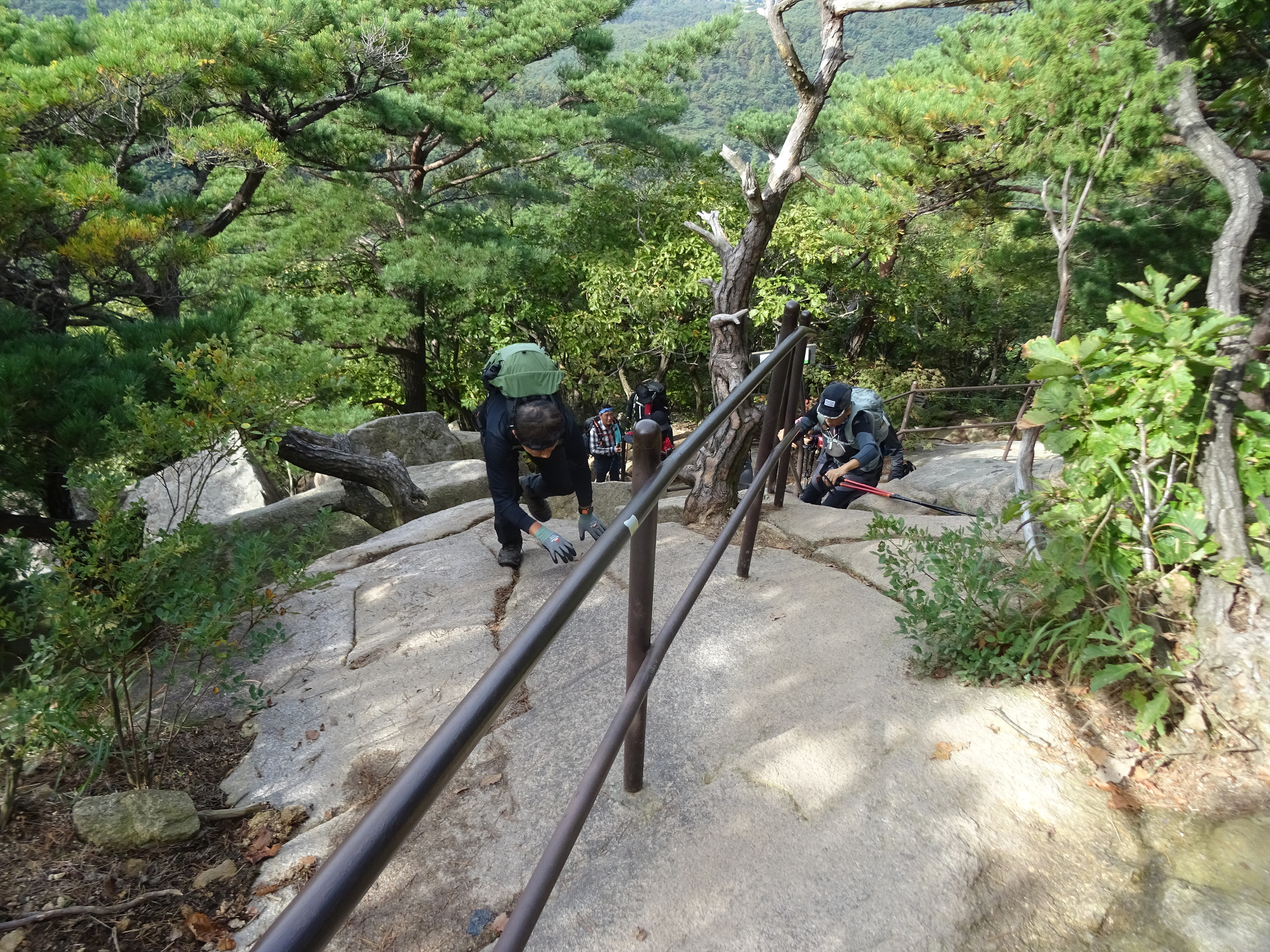 바위틈에 낑겨서 애를 먹는데 먼저 빠져나간 일행이 배낭을 받아줘서 겨우 빠져나갑니다.