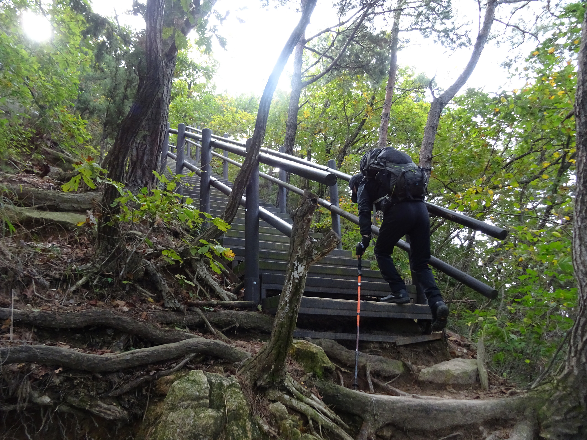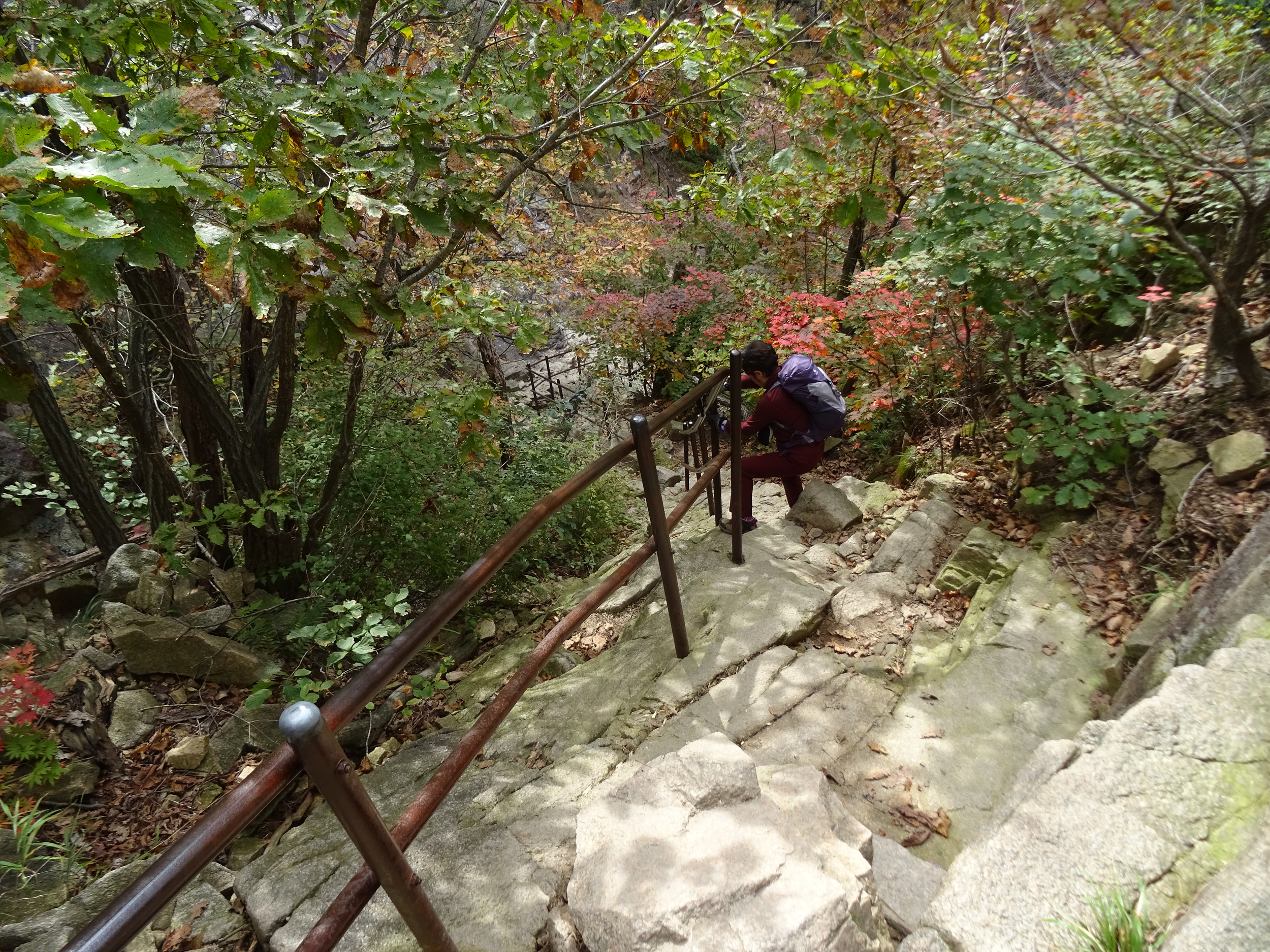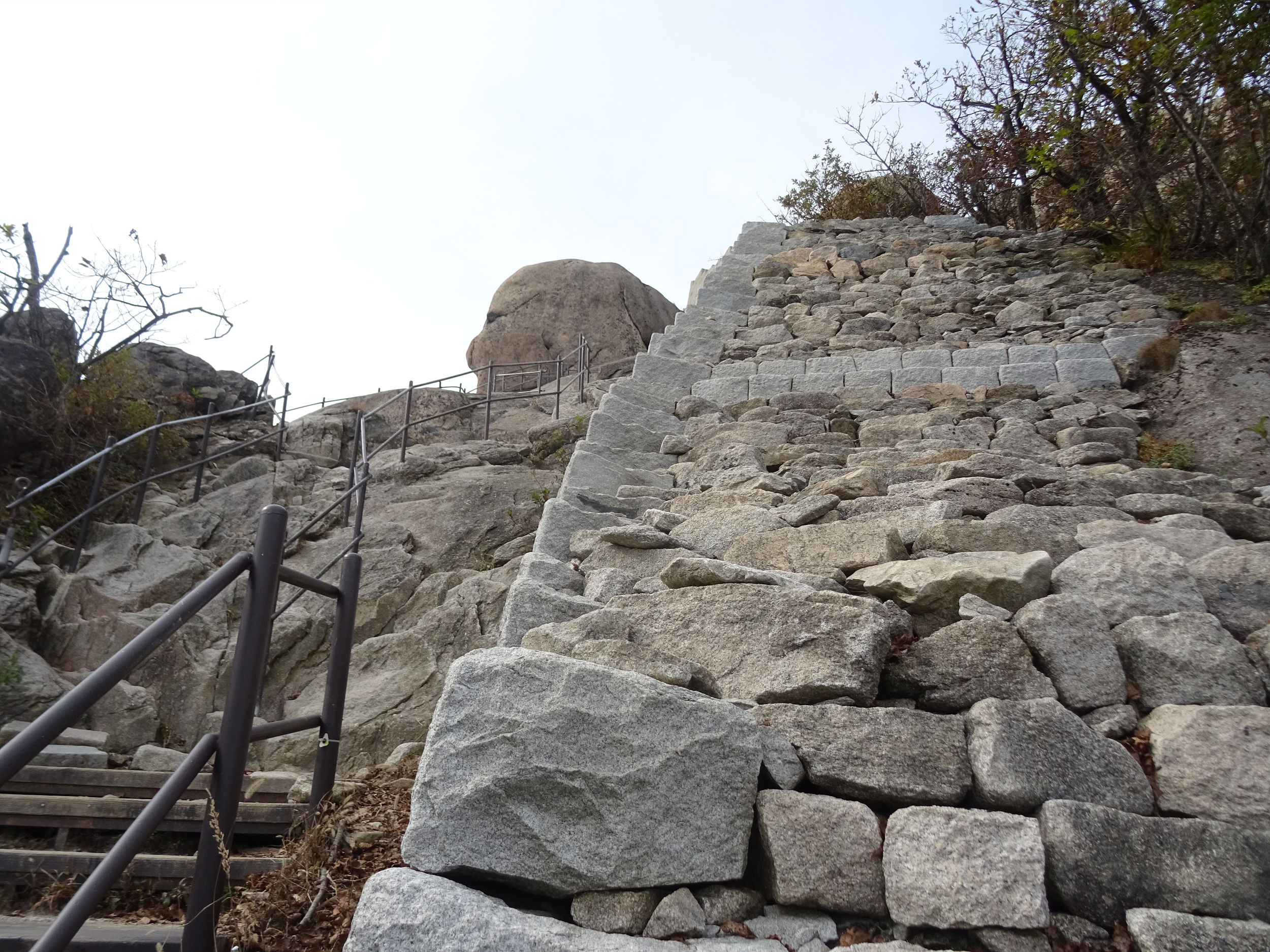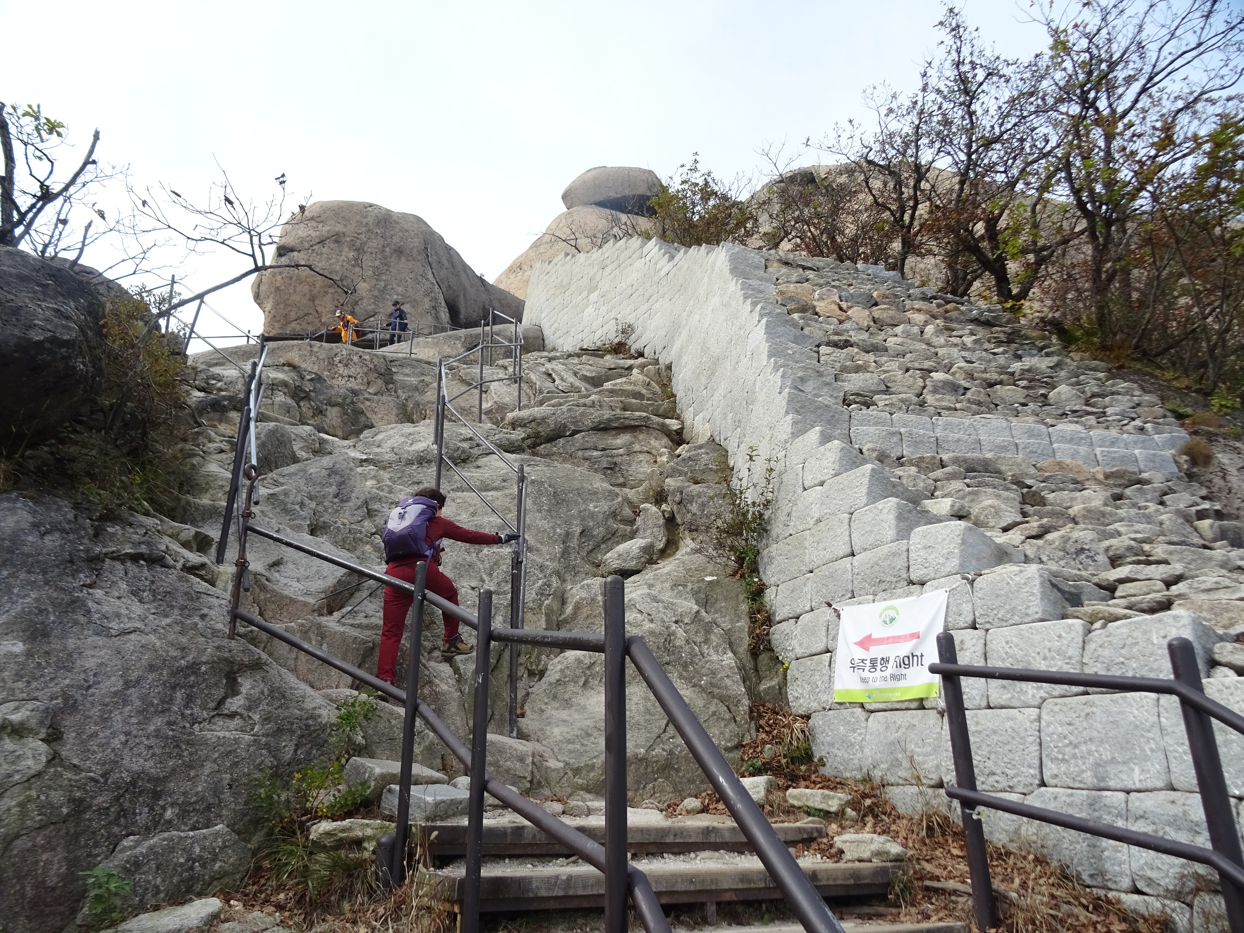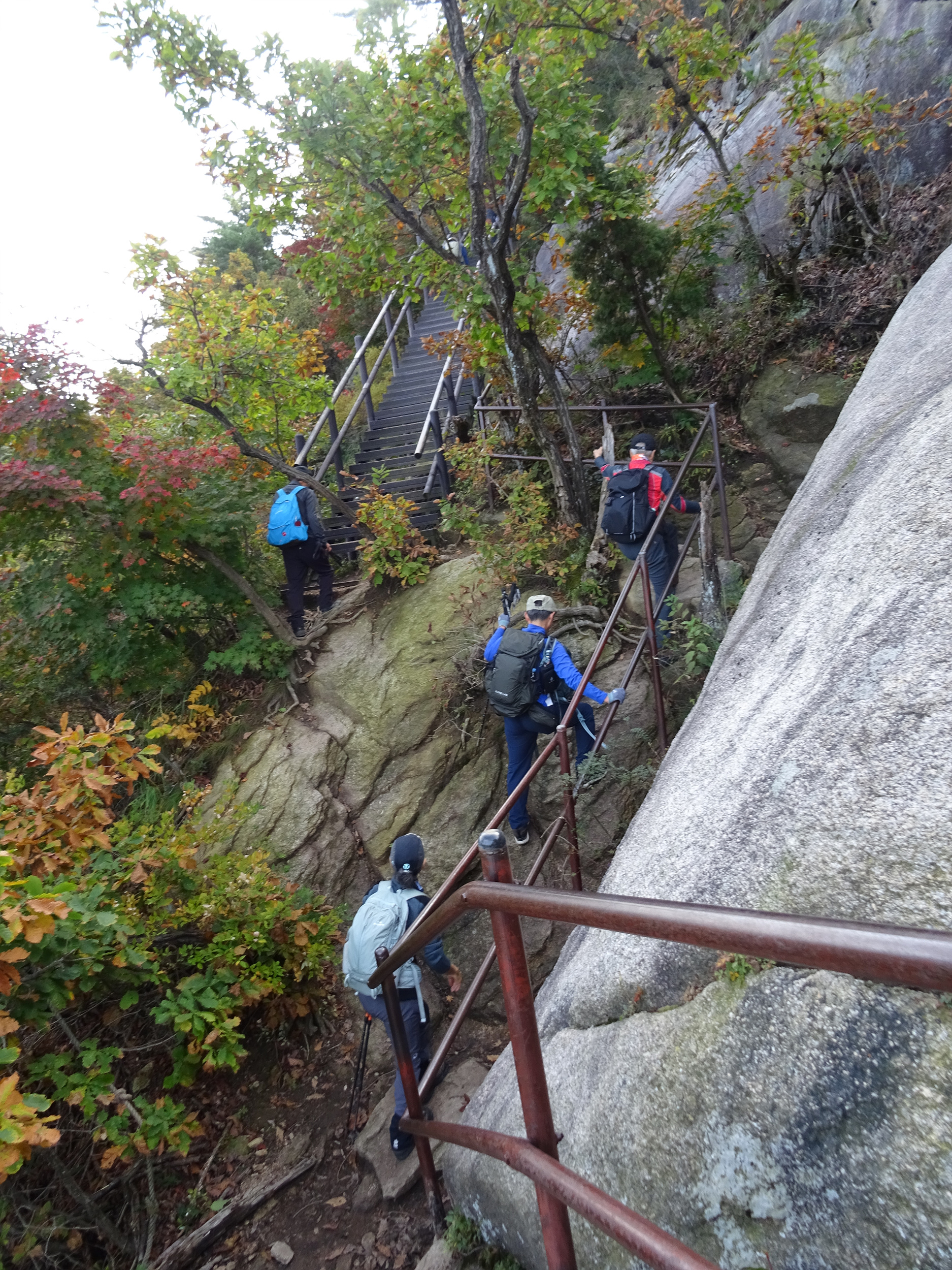 내려오는 사람이나 올라가는 사람 모두 병목 현상이 없이 무난하게 오르내릴 수 있는 건, 좌우로 분리해서 철난간을 보강했기에 별 문제 없죠.