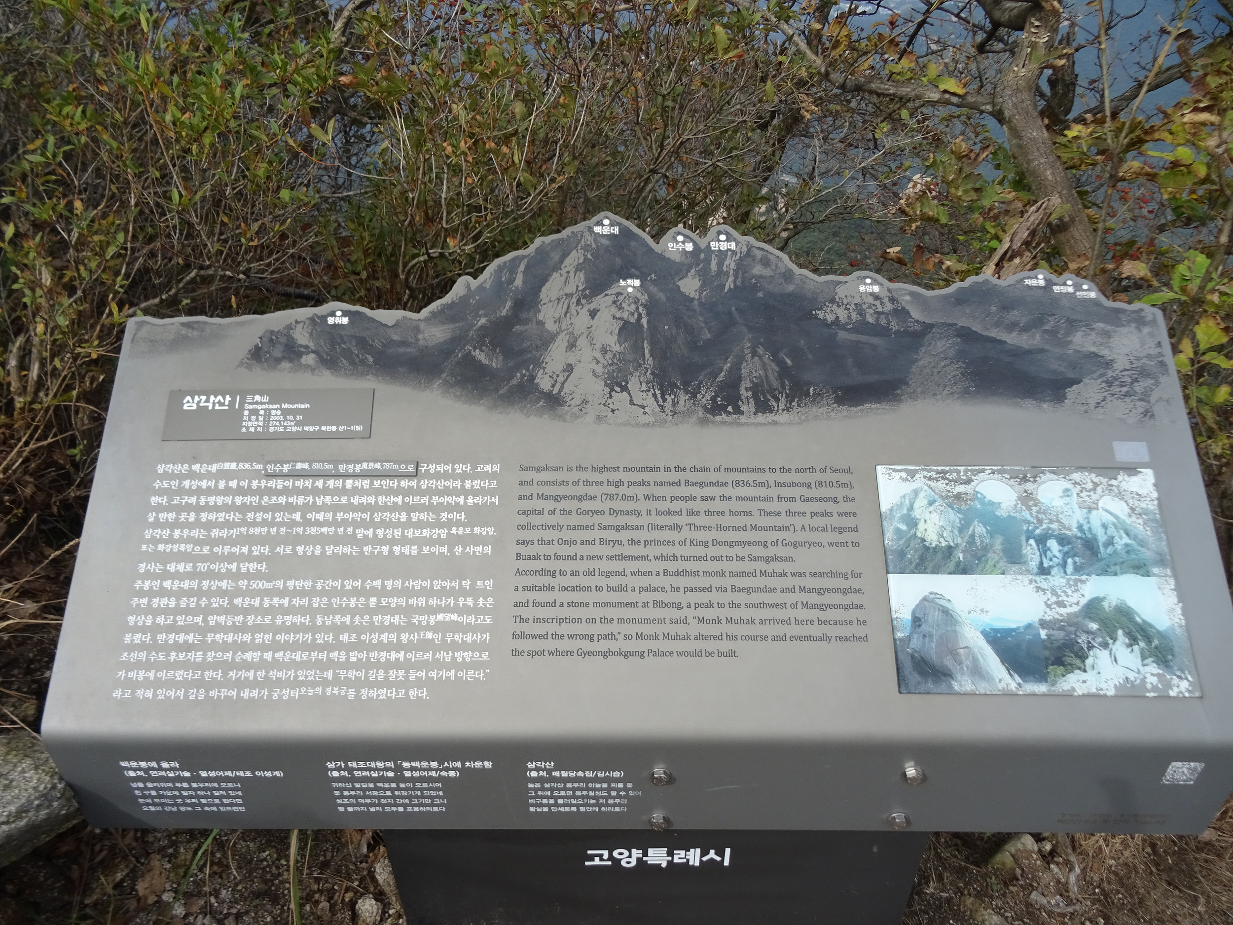 서울과 인접한 山들 중 가장 높고 산세가 험하여, 예로부터 서울의 진산으로 여겼구요.