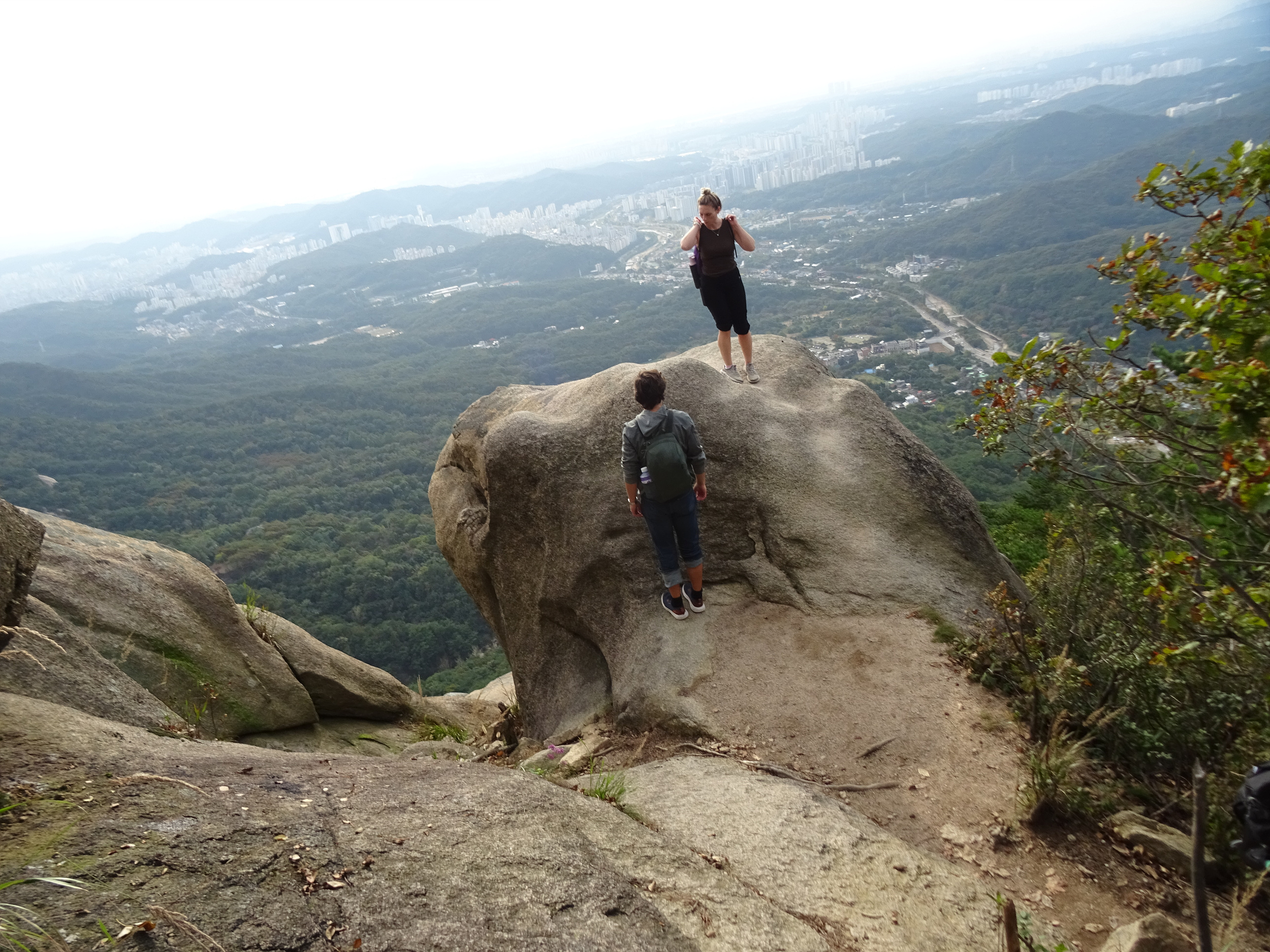 이내 마주친 큰 바위에는 외국 여인이 올라가 있네요.