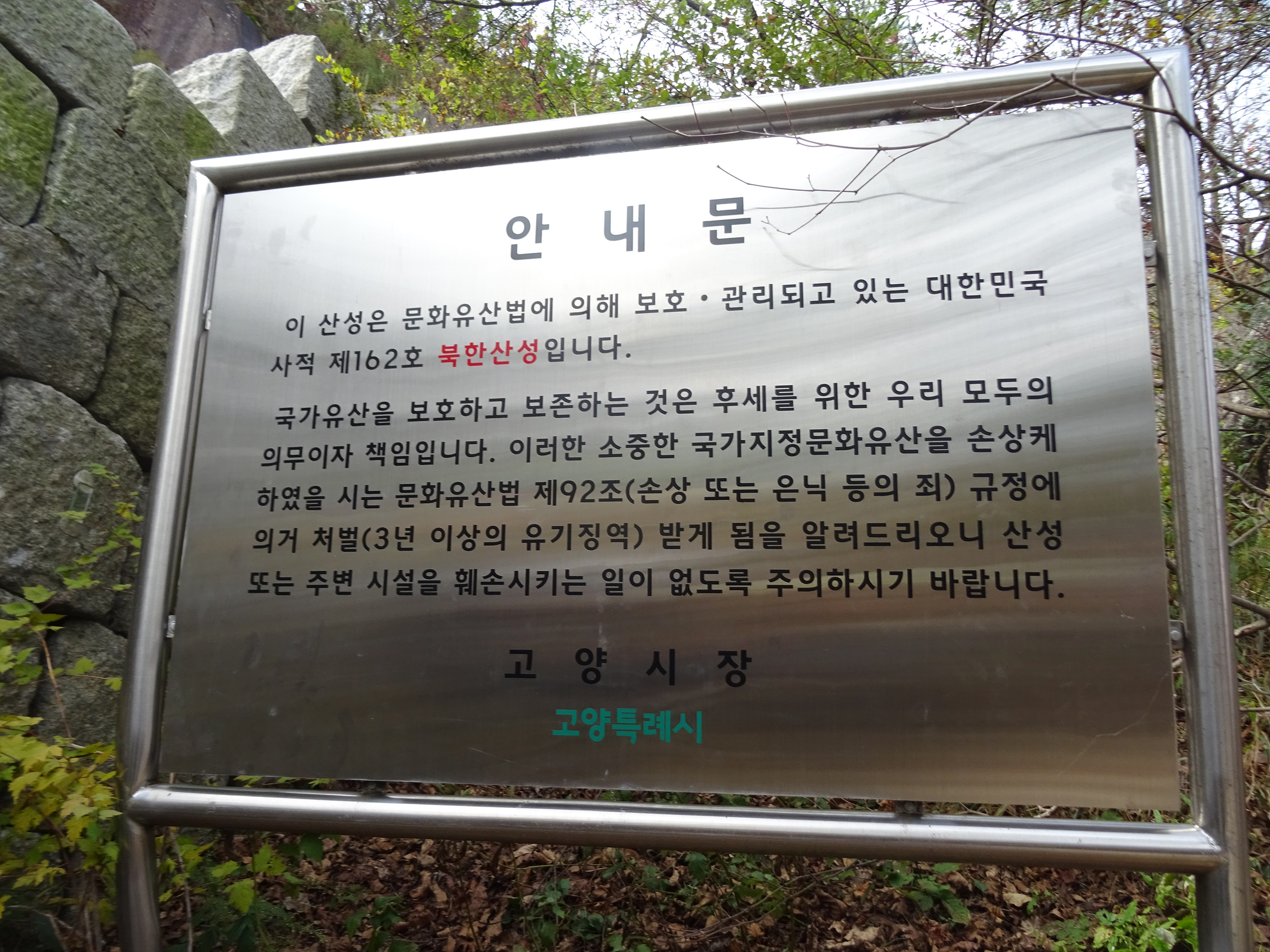 고양시 덕양구 북한동 산1-1의 북한산성은 1968.12.5일자로 사적 제162호로 지정되었구요.