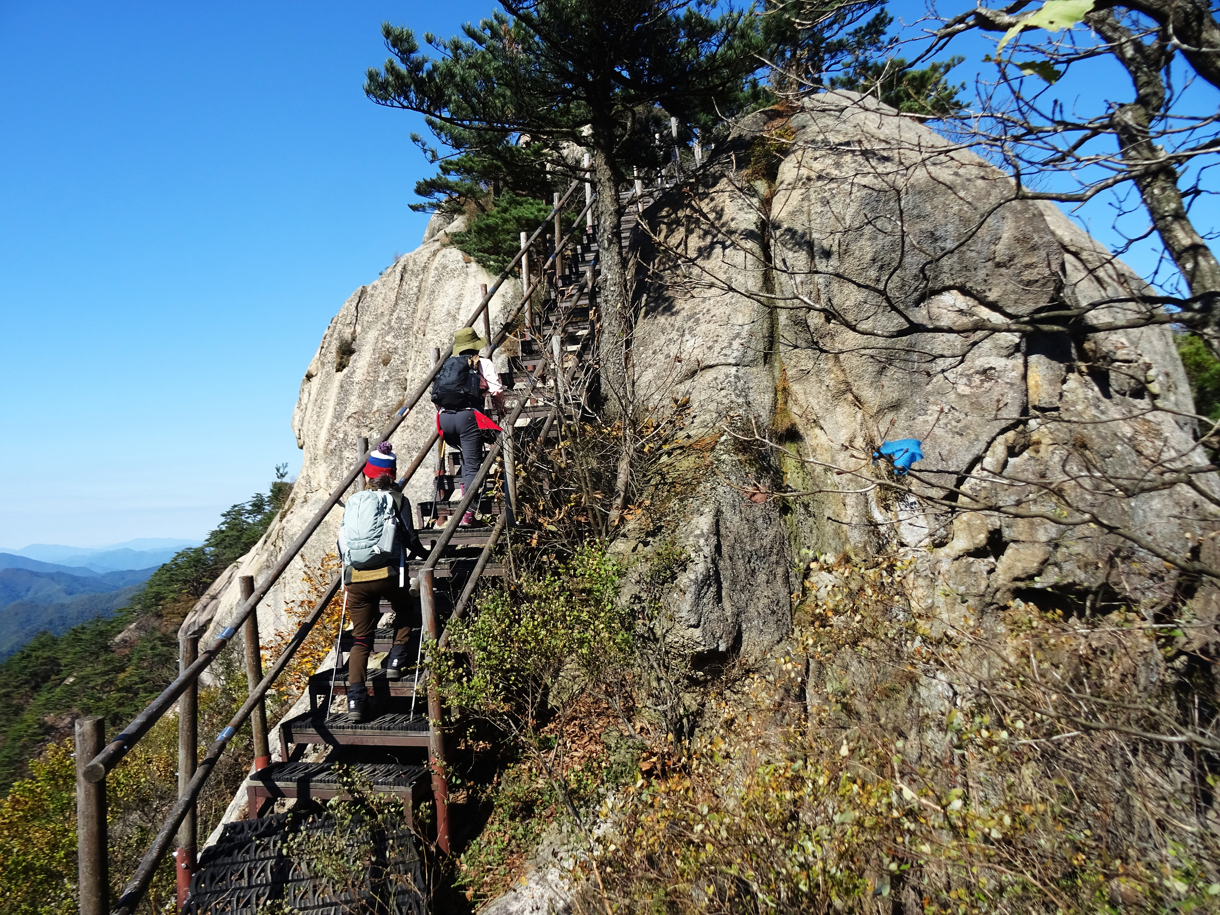 바위에 놓인 계단을 올라가며 바라보는 경치도