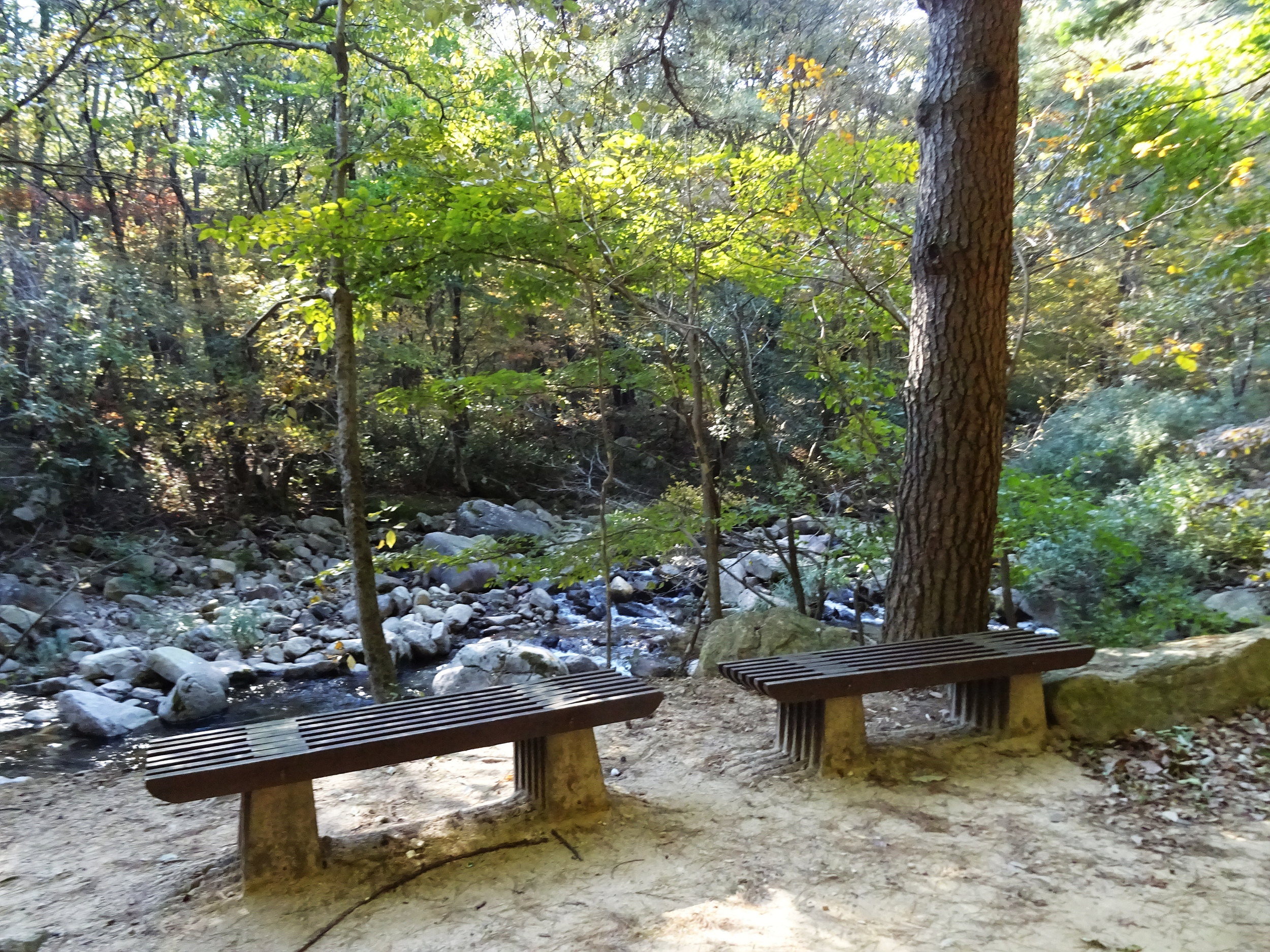 내를 건너 쉼터에서 숨 좀 돌립니다.