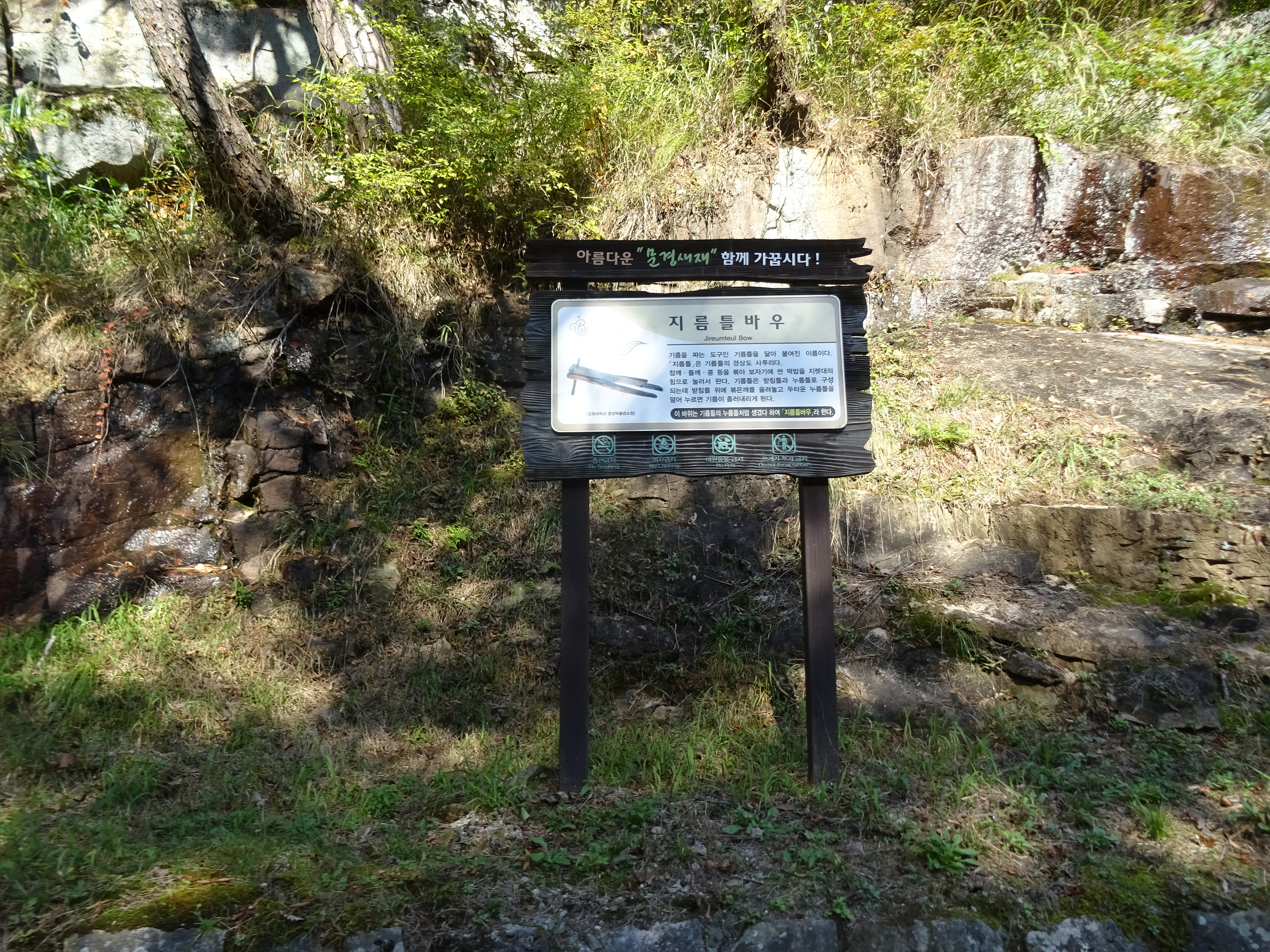이 바위는 기름을 짜던 기름틀처럼 생겼다고 '지름틀바위'입니다.
