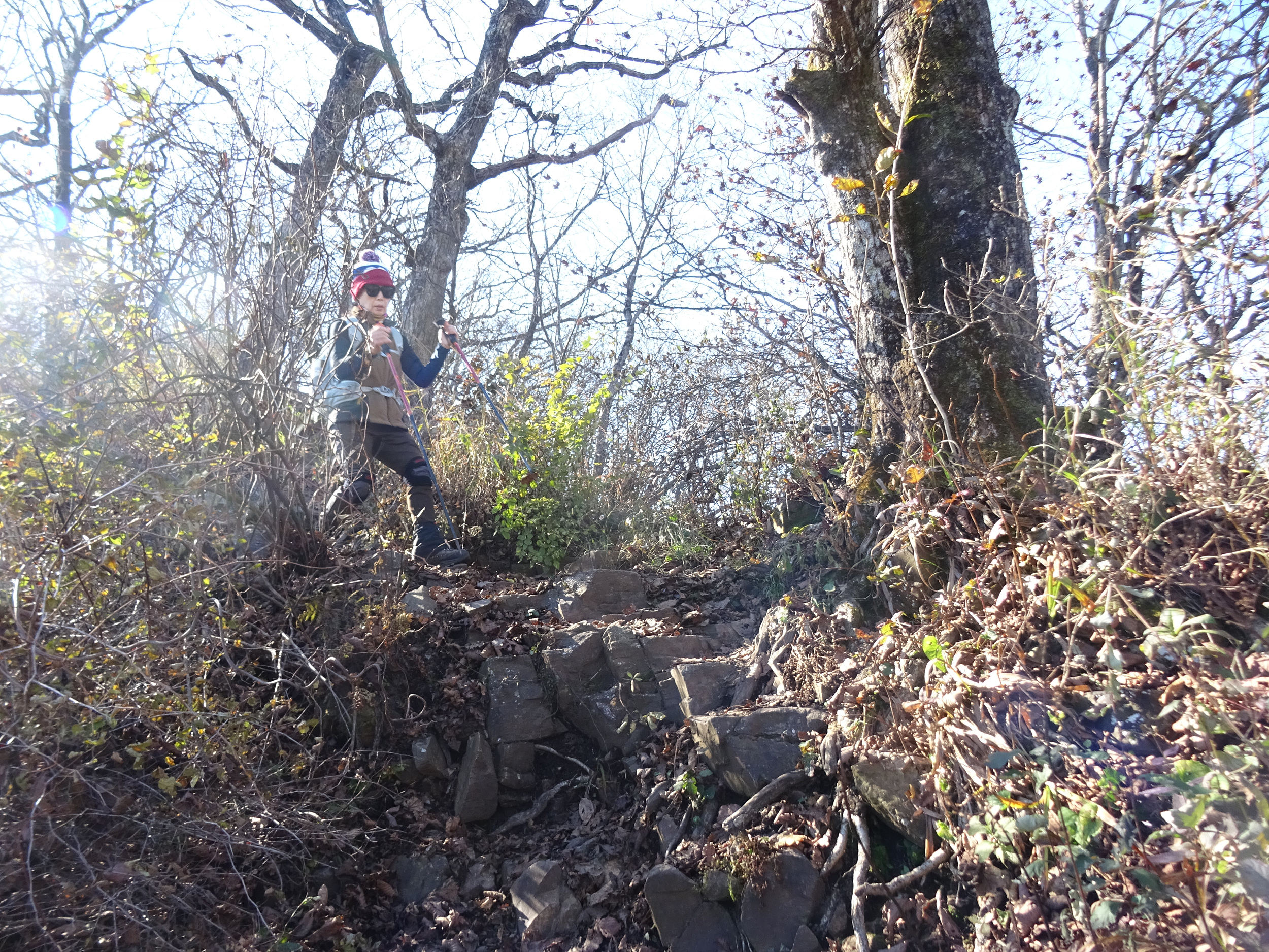 정상을 지나자 바로 가파른 내리막이라 조심해서 내려갑니다.