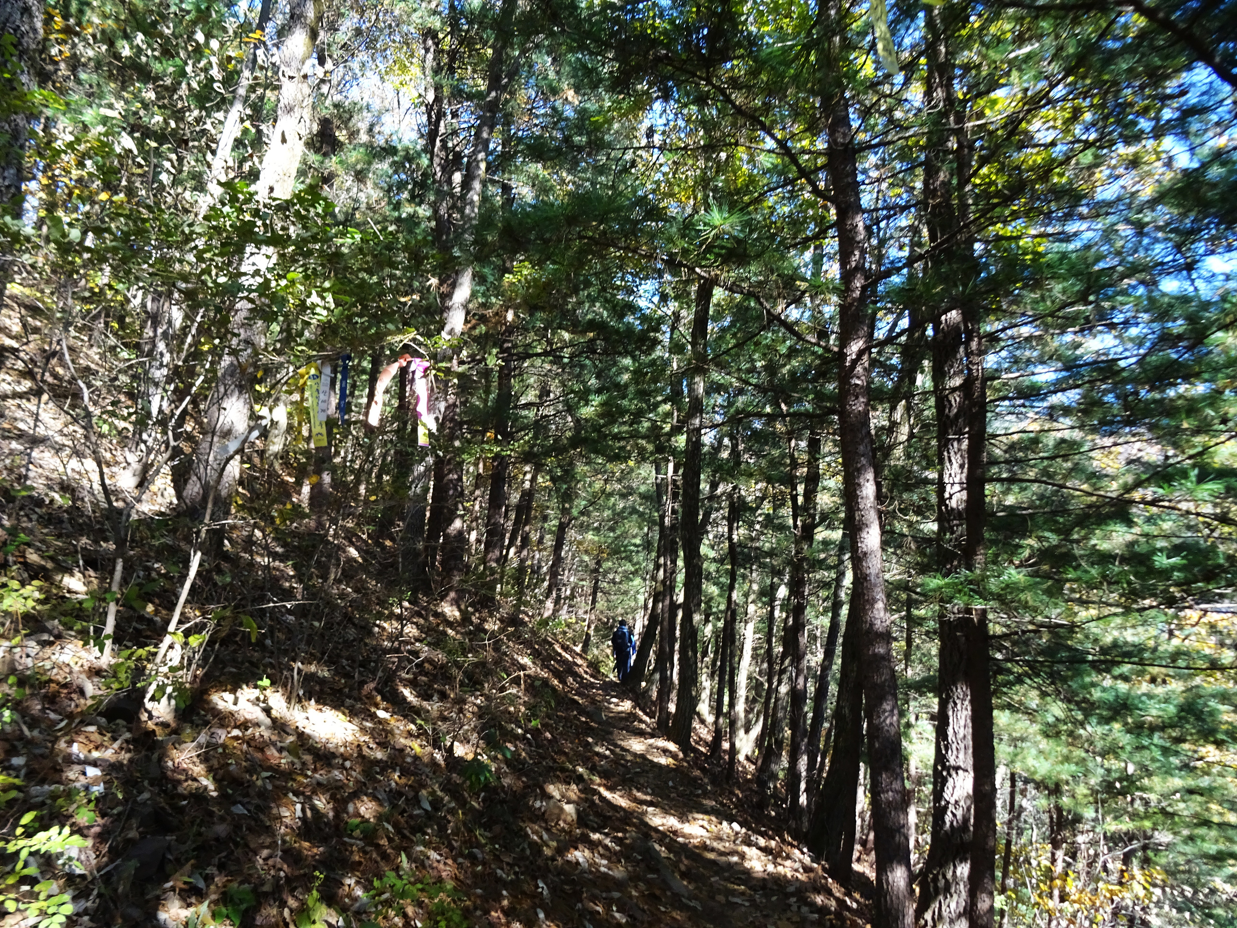 길이라기에는 아주 형편없지만 산악회의 리본을 만나고, 흙을 밟으며 걸을 때는 안도의 한숨이 내쉬어집니다.