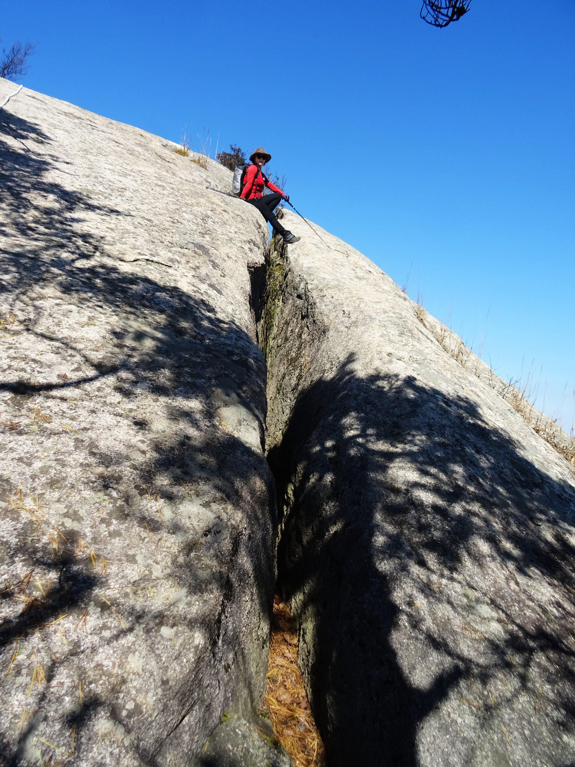 눈 쌓인 산에 생긴 깊은 균열 크레바스(crevasse)처럼 쩍 갈라진, 아주 큼지막한 바위위로 올라갑니다.