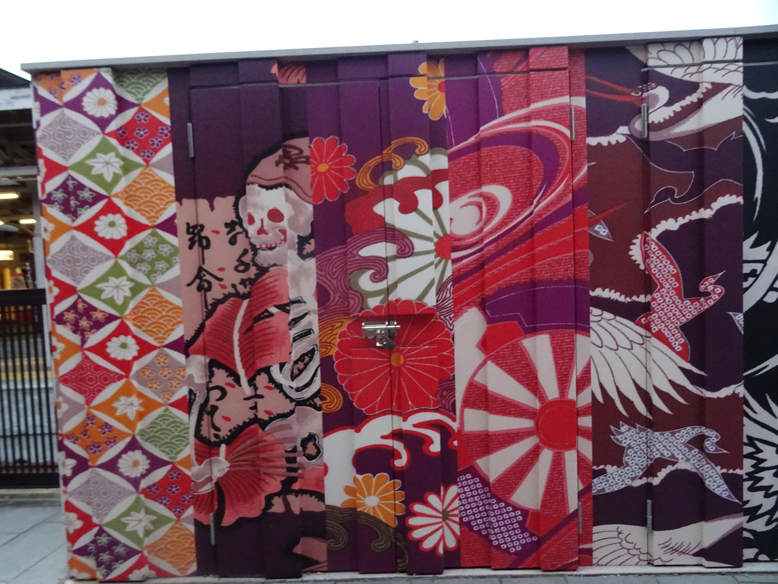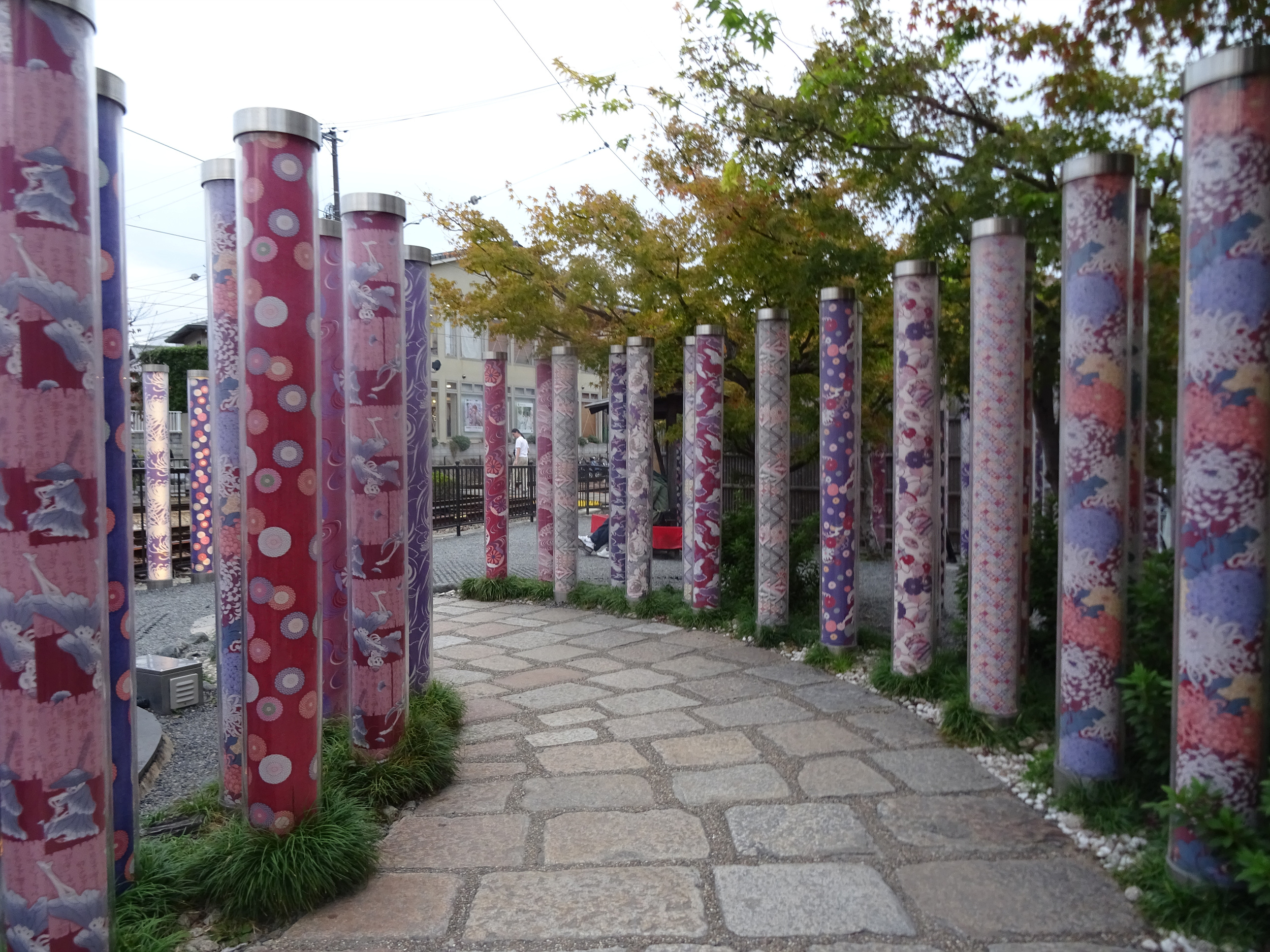 높이 2m가량의 이 기둥안에는 교토의 전통 염색기법인 교유젠(京友禅)으로 만들어진 천이 통안에 둥그렇게 말려있는데, 교유젠은 17세기 에도시대부터 이어져 온 일본의 대표적인 염색기법이라고 합니다. 문양을 섬세하게 넣는 전통기술이라고 하죠.