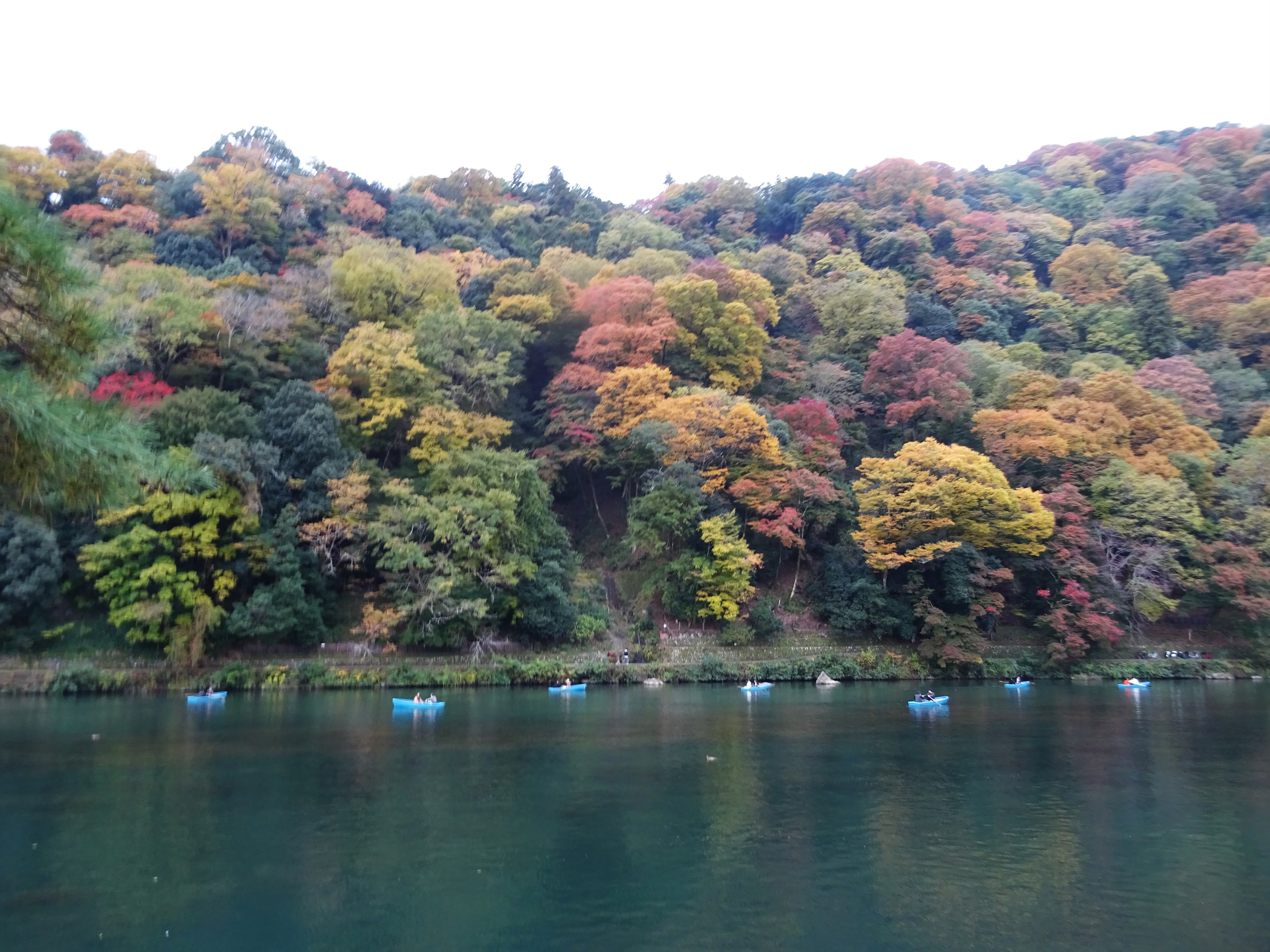 가쓰라강 건너편의 산은 단풍으로 물들었습니다.