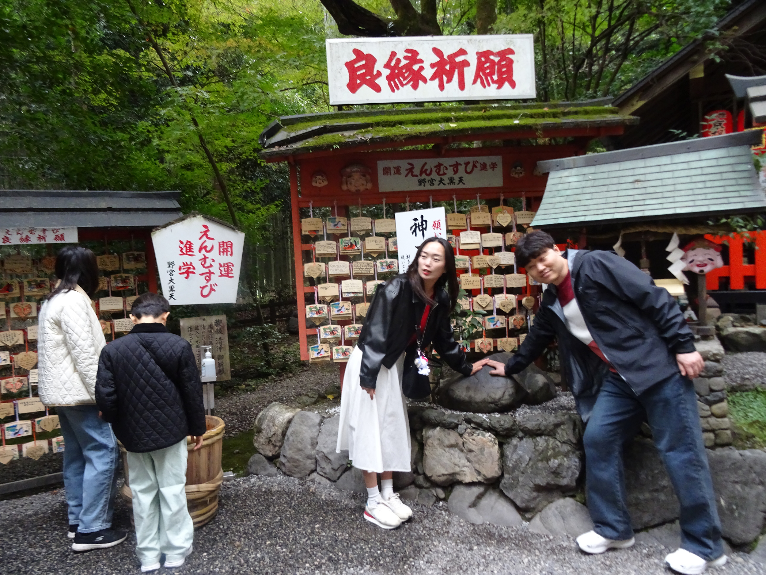 "대나무숲을 한바퀴 돌고 싶으면 노노미야 신사 왼쪽으로 가요.
