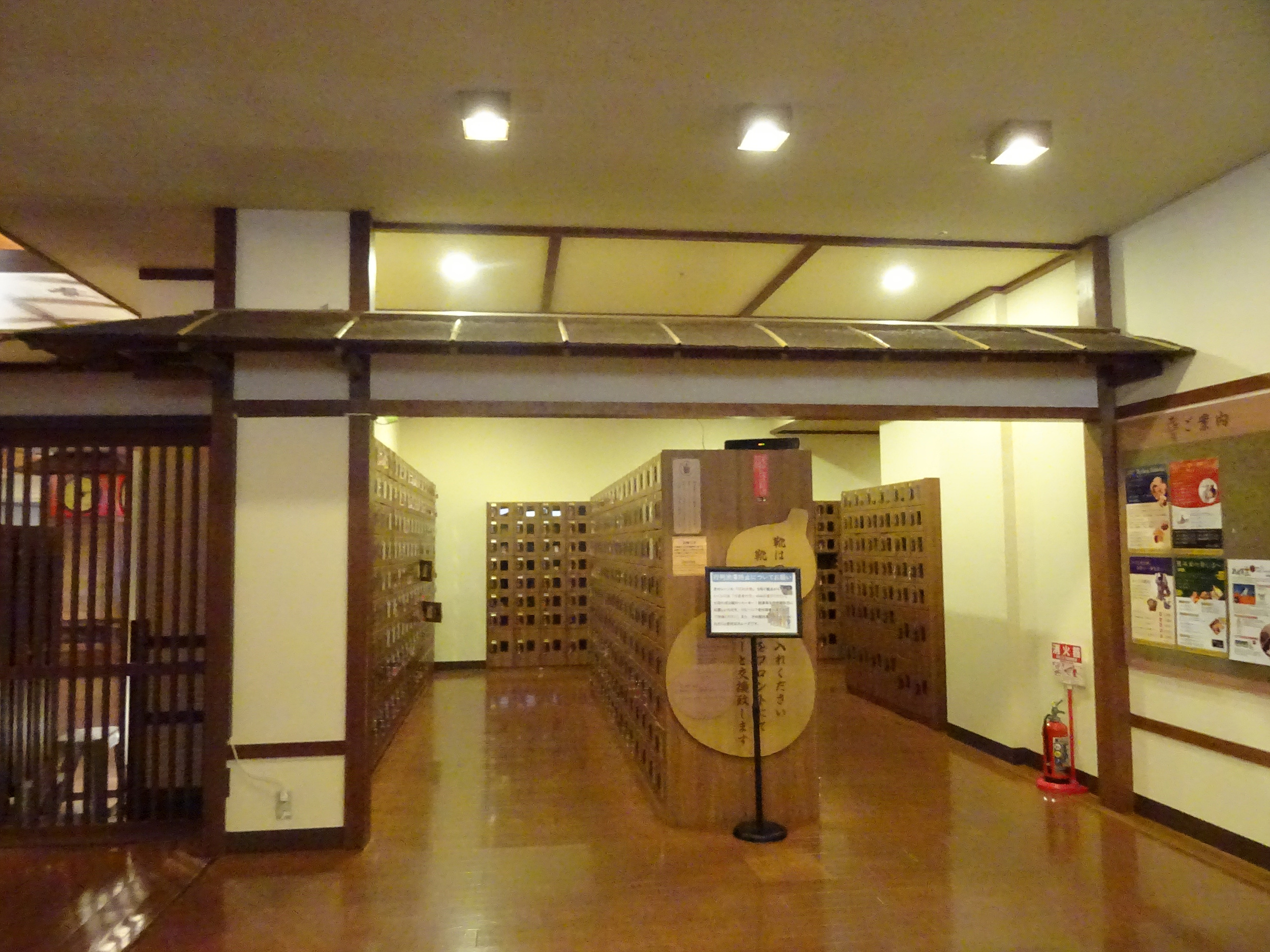 유카타와 수건이 든 가방을 받고 앞으로 곧장 가서 왼쪽으로 꺾으면 남자 1차, 오른쪽은 여자 1차 탈의실이 있죠.(2차 탈의실은 욕장에 들어가기 직전, 완전 탈의하는 곳) 사진 촬영은 여기까지.