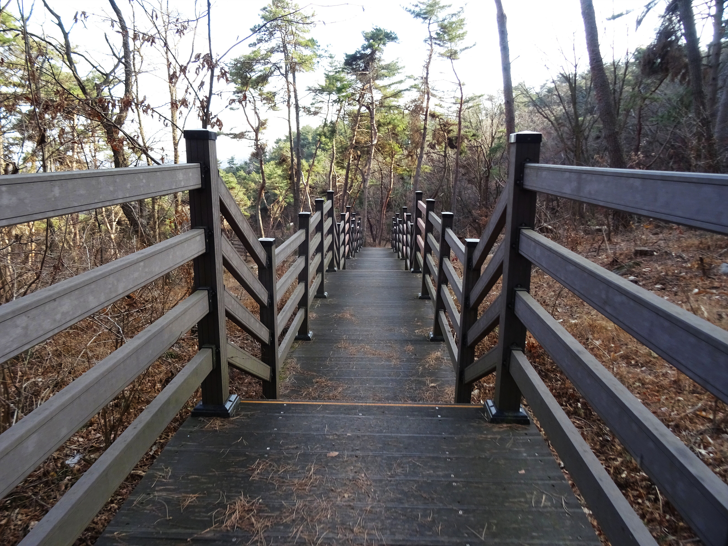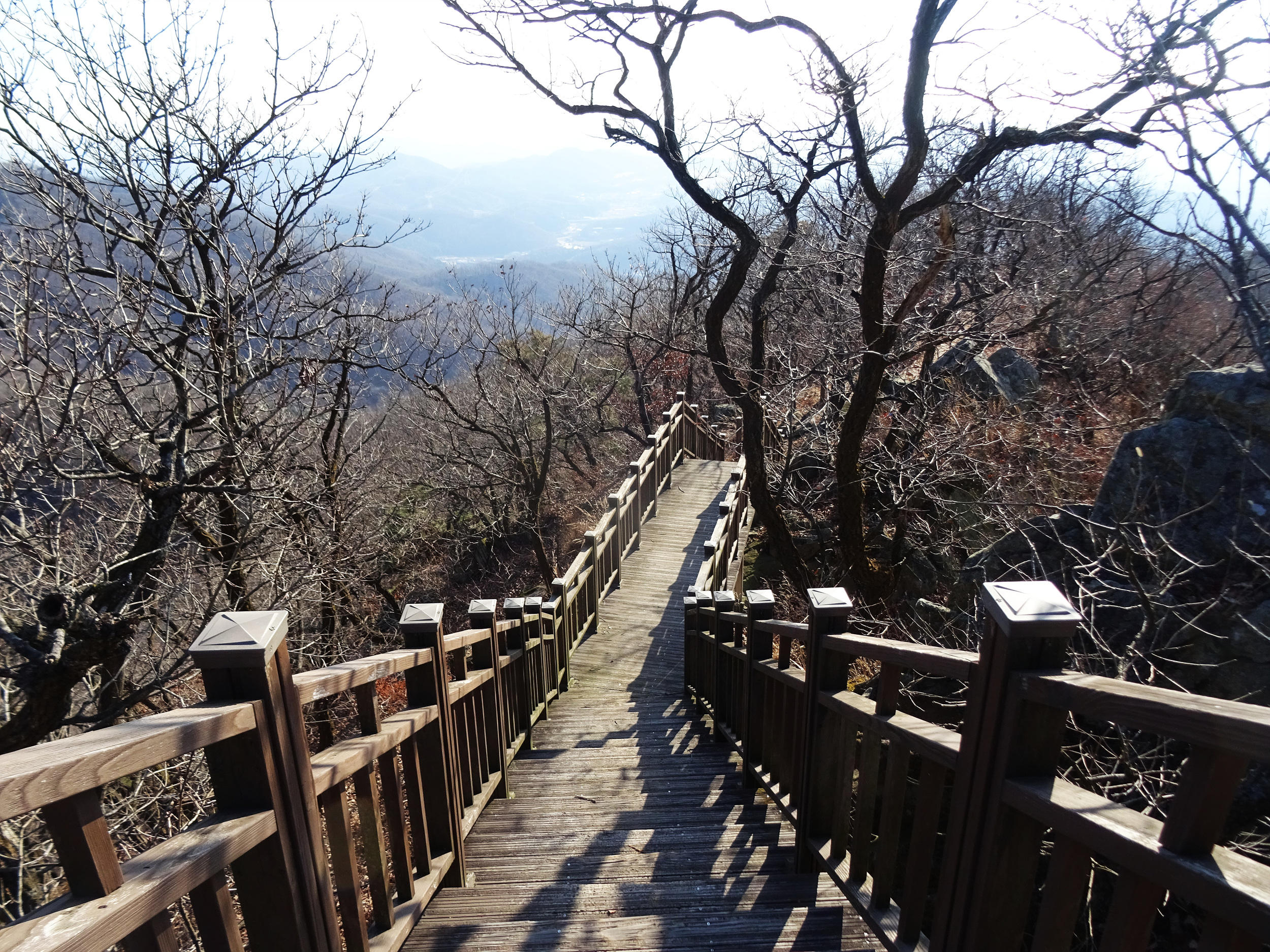마구산 정상에서 태화산으로 내려가는 목제 계단