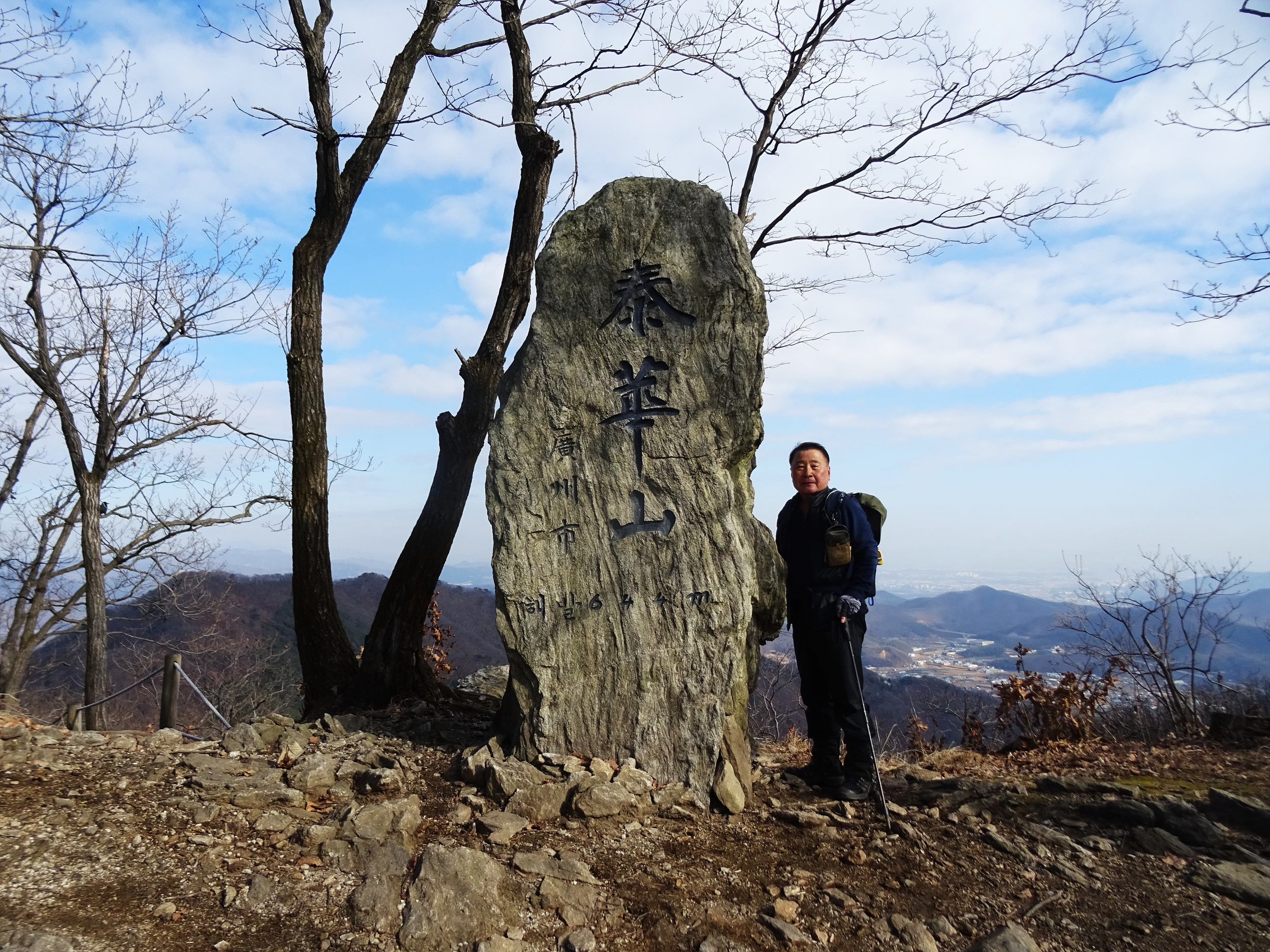 644m의 태화산 정상석은 키를 훌쩍 넘는 커다란 바위입니다.