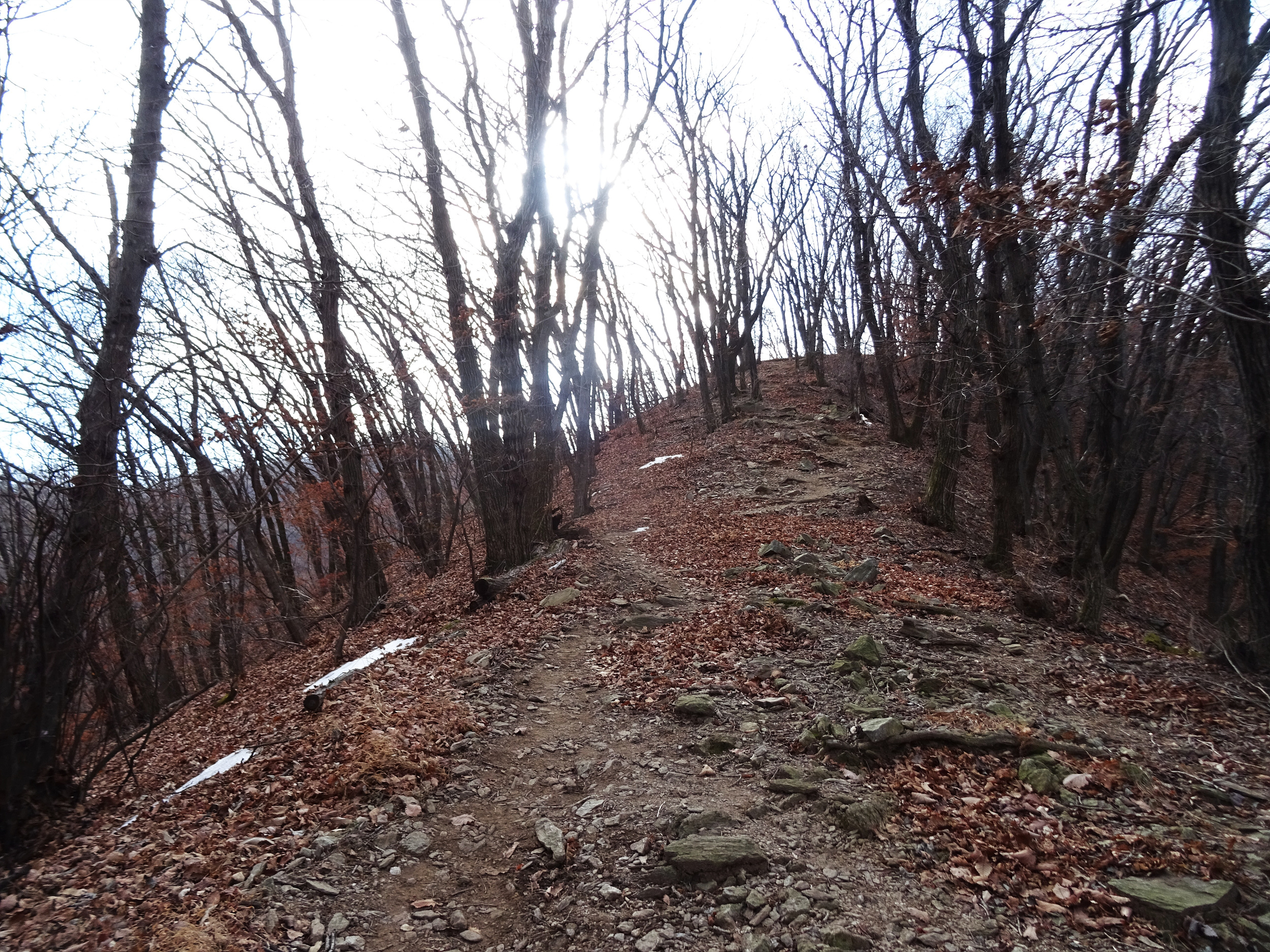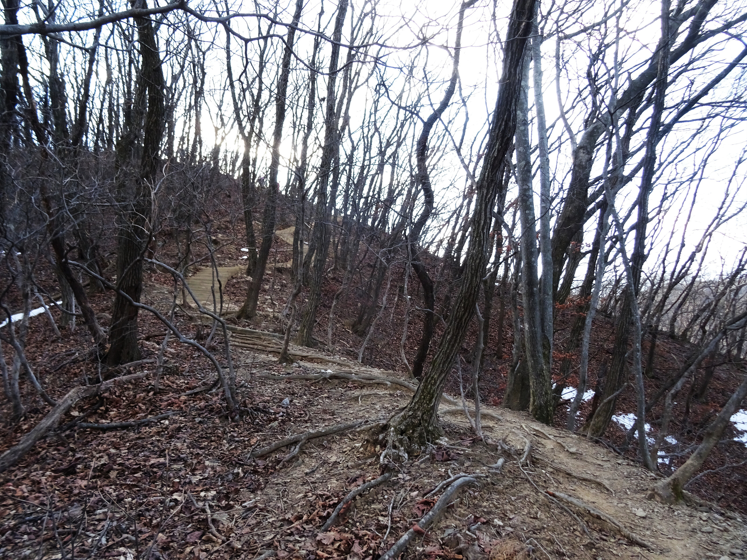 산등성이로 올라가는 길 군데 군데에 눈은 남아있습니다.