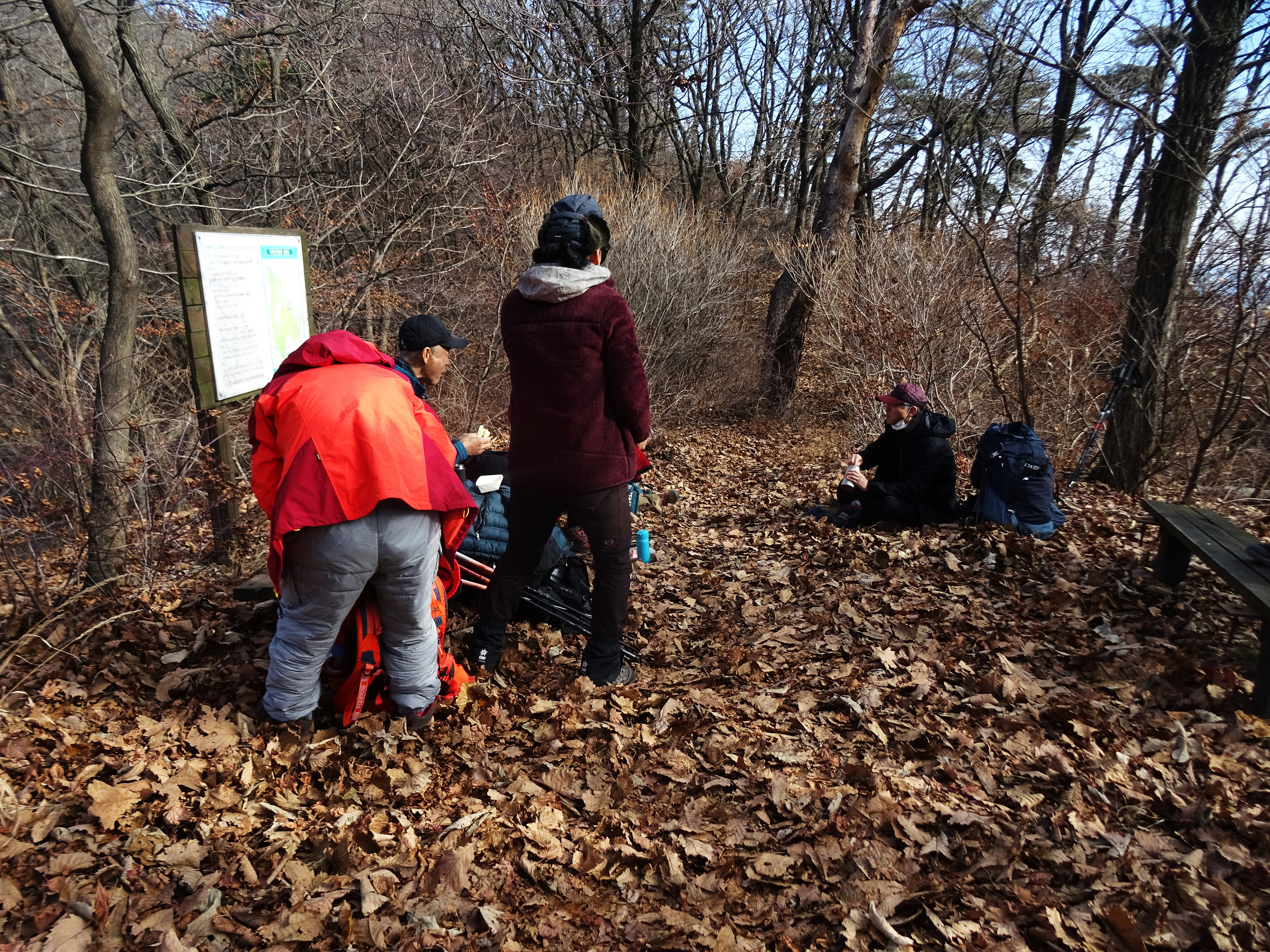 마구산으로 간 사람들이 오기를 기다리며 앉아 있는 일행,