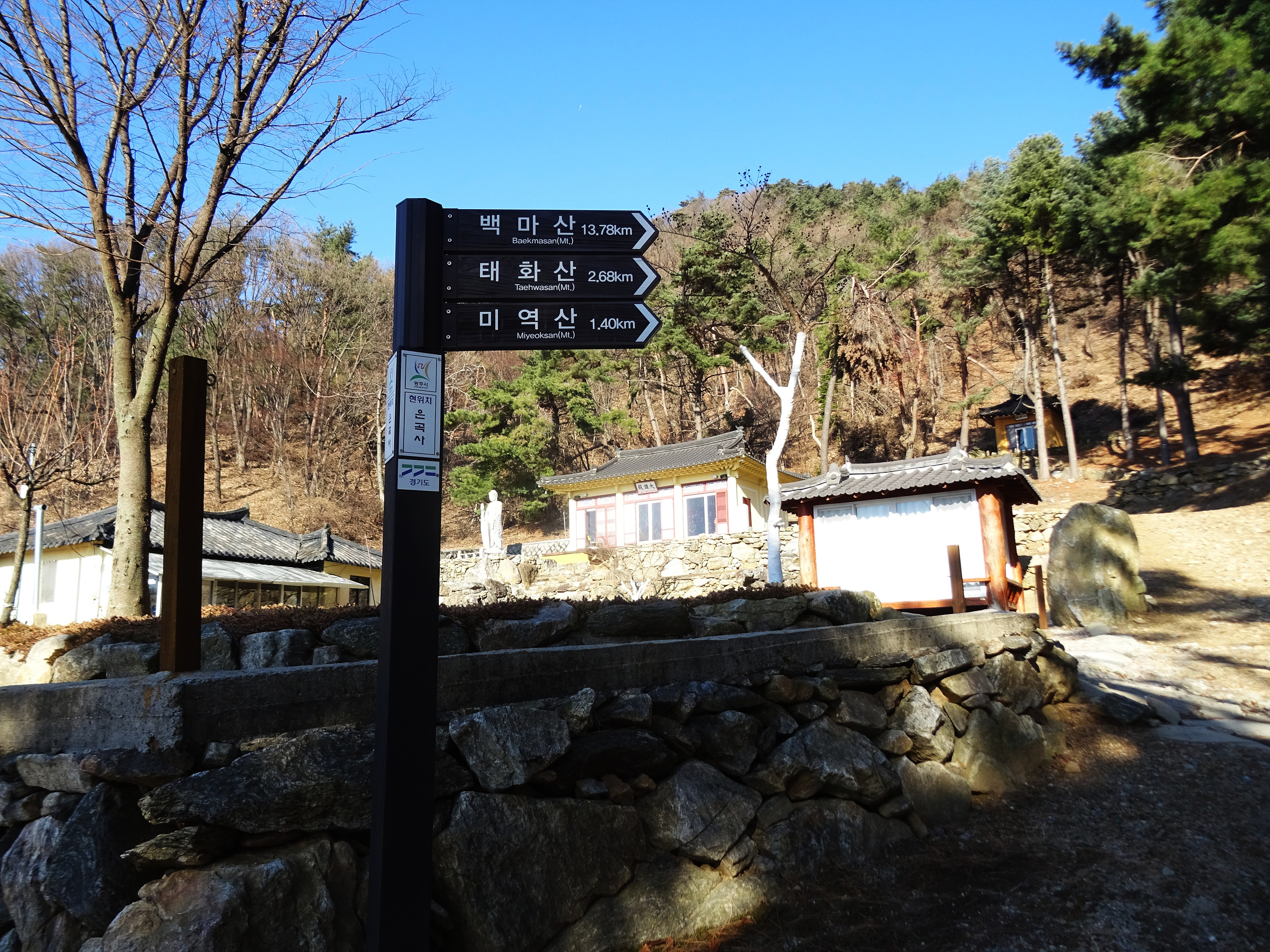 은곡사 방향, 주차장 방향을 가르키는 이정표