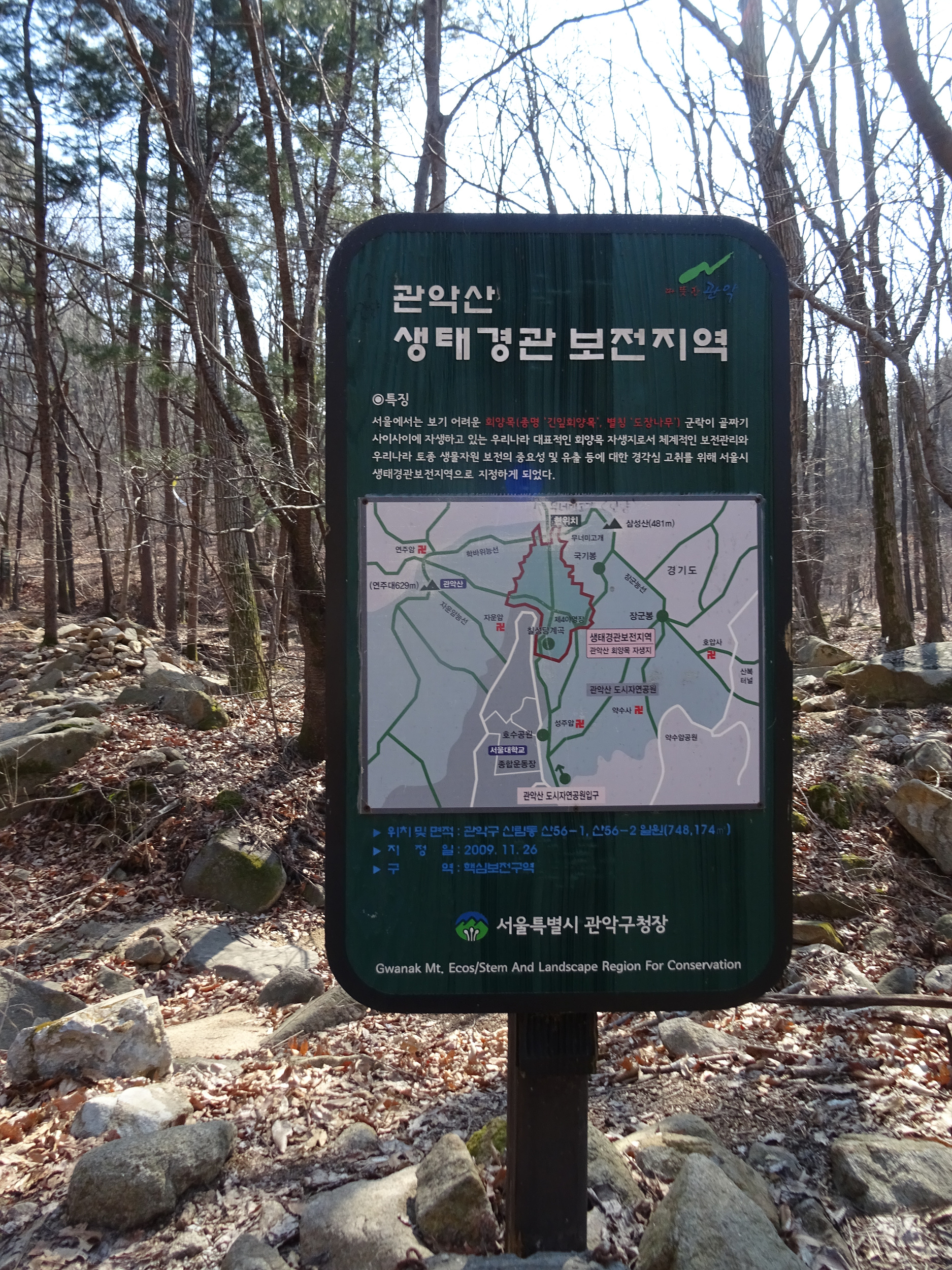 '관악산의 풍수에 대한 안내판'이 있어 한번 읽어보고 가요.