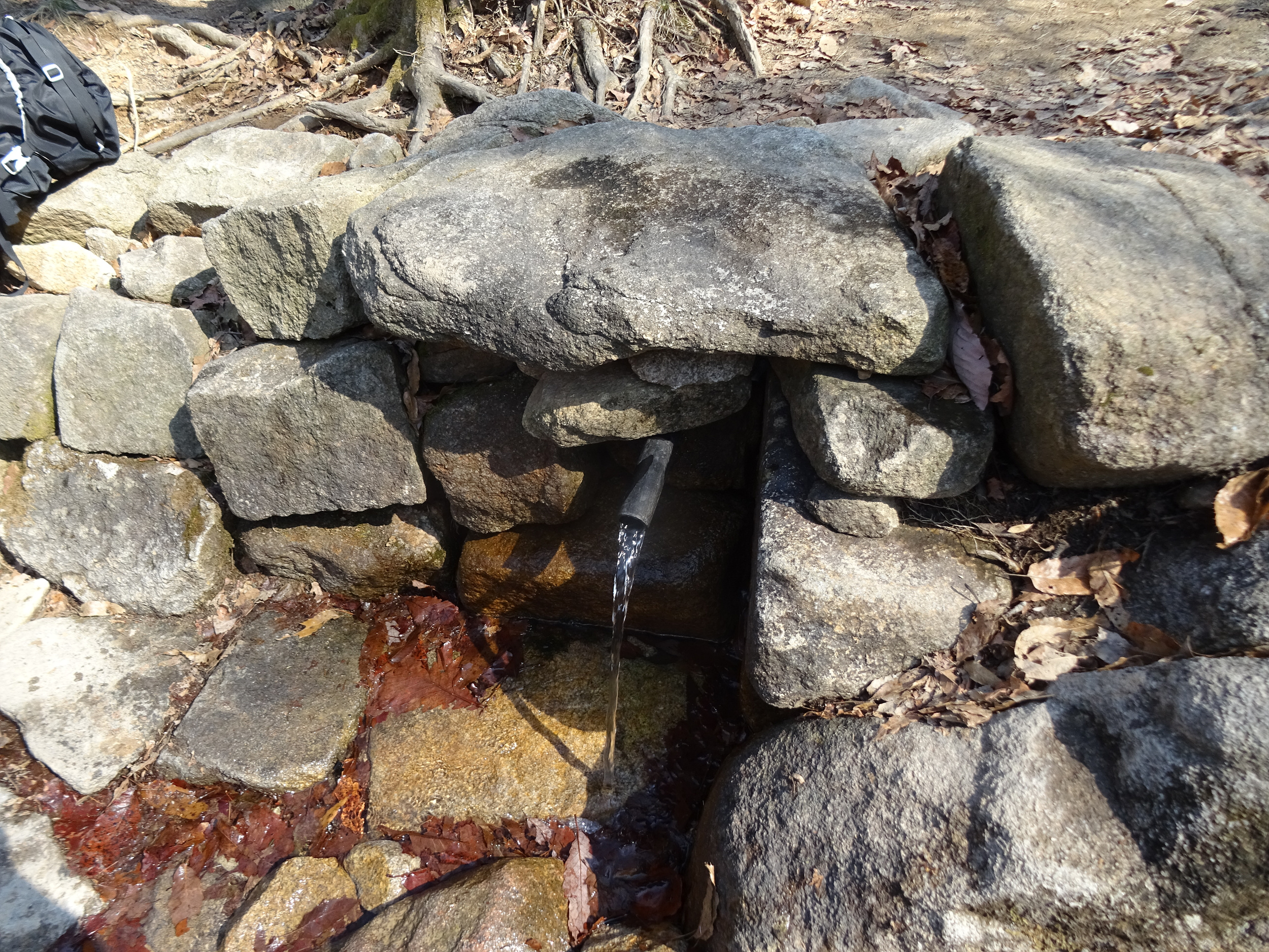 내려오는 도중에 샘터가 있어, 물 한모금 마십니다.