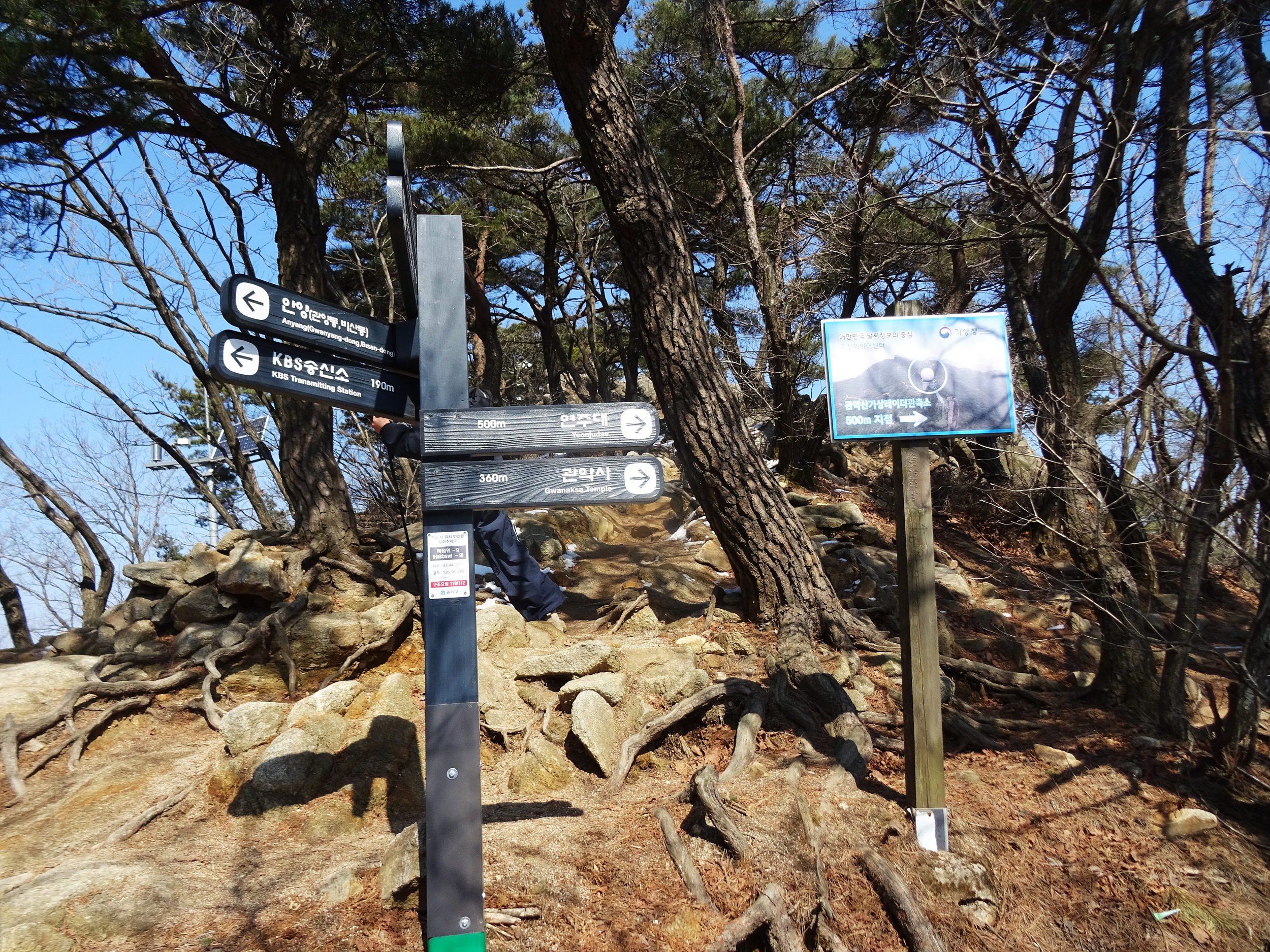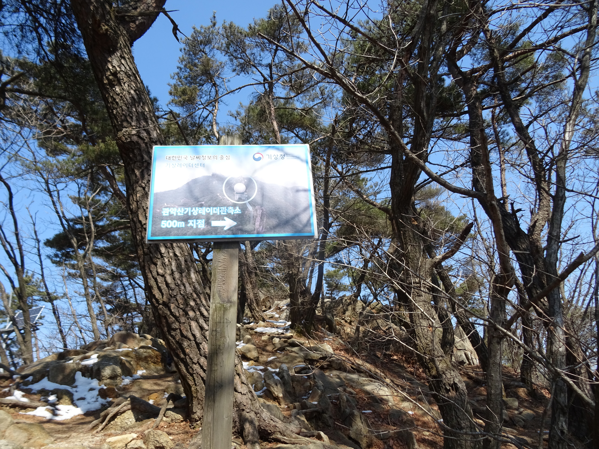'관악산 기상레이더 관측소'가 가까이 보인다는 건, 정상에 가까워졌다는 거죠.