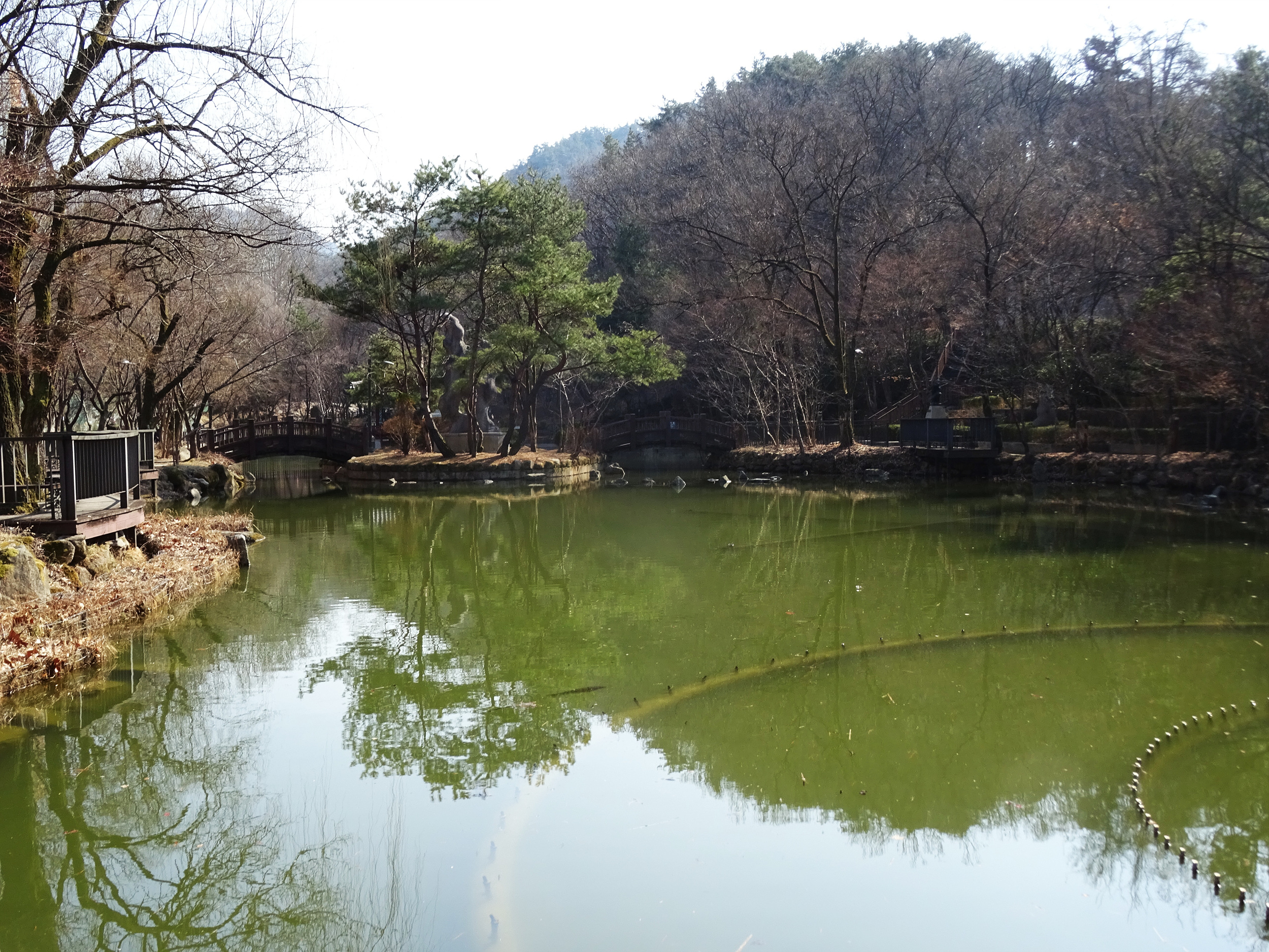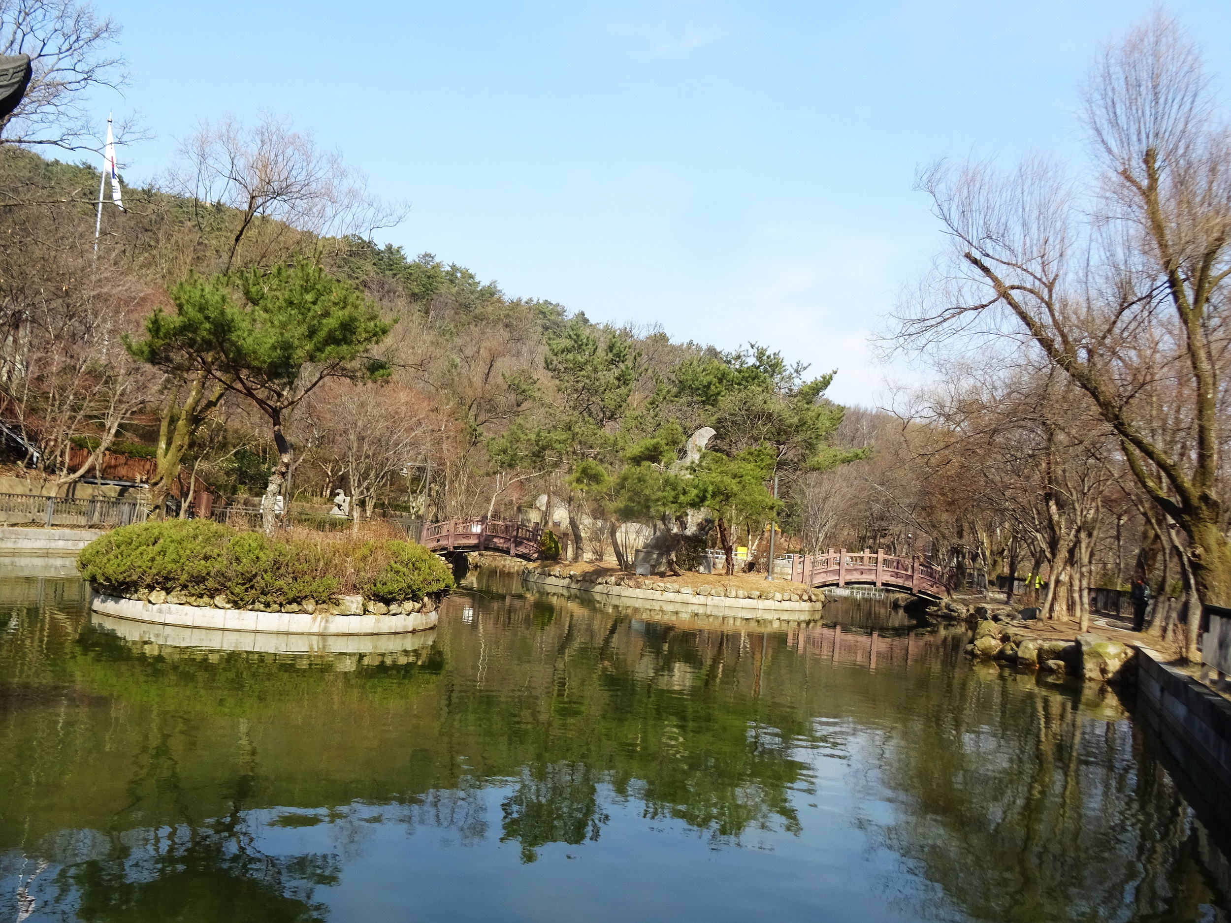 자그마한 호수 주변에는 정자와 작은다리를 설치했고 나무를 심었으며 괴석, 쉼터 등을 마련해 놓아 아기자기한 공원으로 꾸몄습니다.
