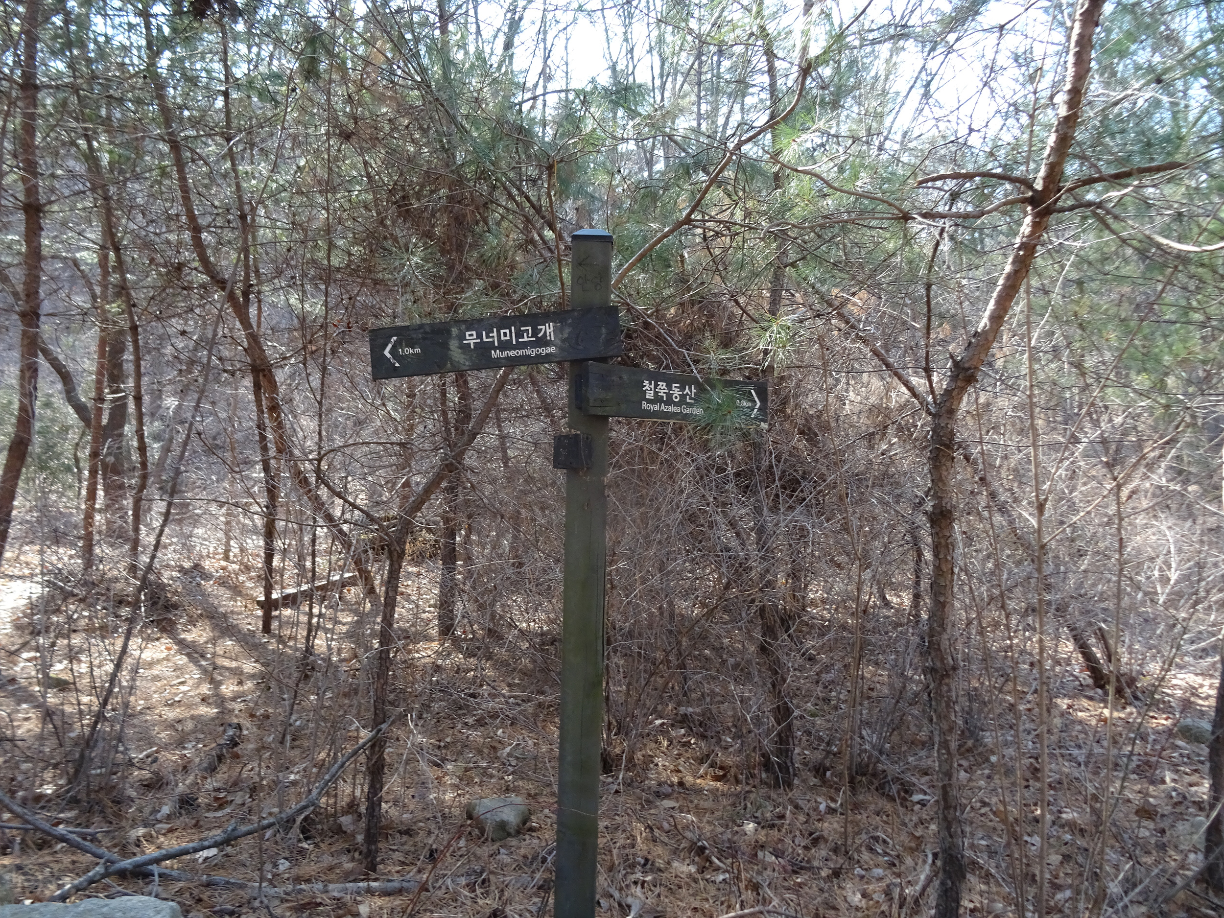 이정표가 가르키는 연주대 방향으로 가자, 눈이 녹아 땅이 질척거리는 넓은 곳이 나타납니다.