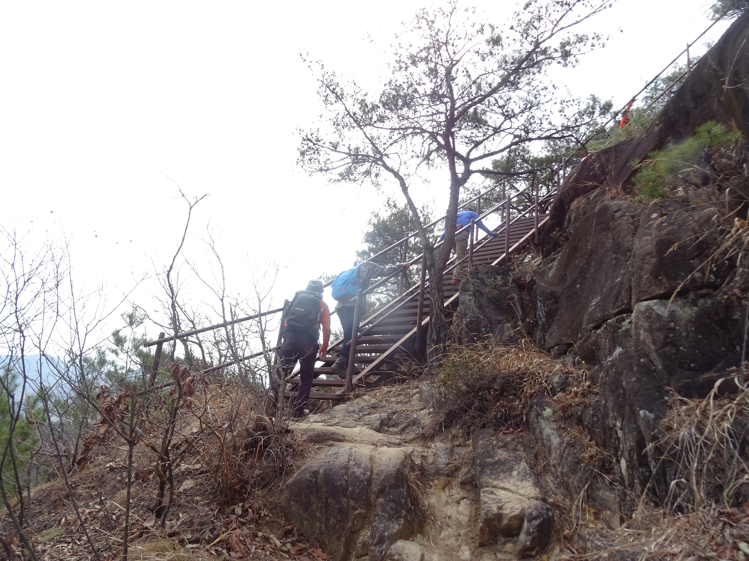 가파른 계단을 오르느라 힘이 빠져서 그런가 봐요. 그래서 정상을 500m 남겨두고 점심을 먹고 가기로 합니다.