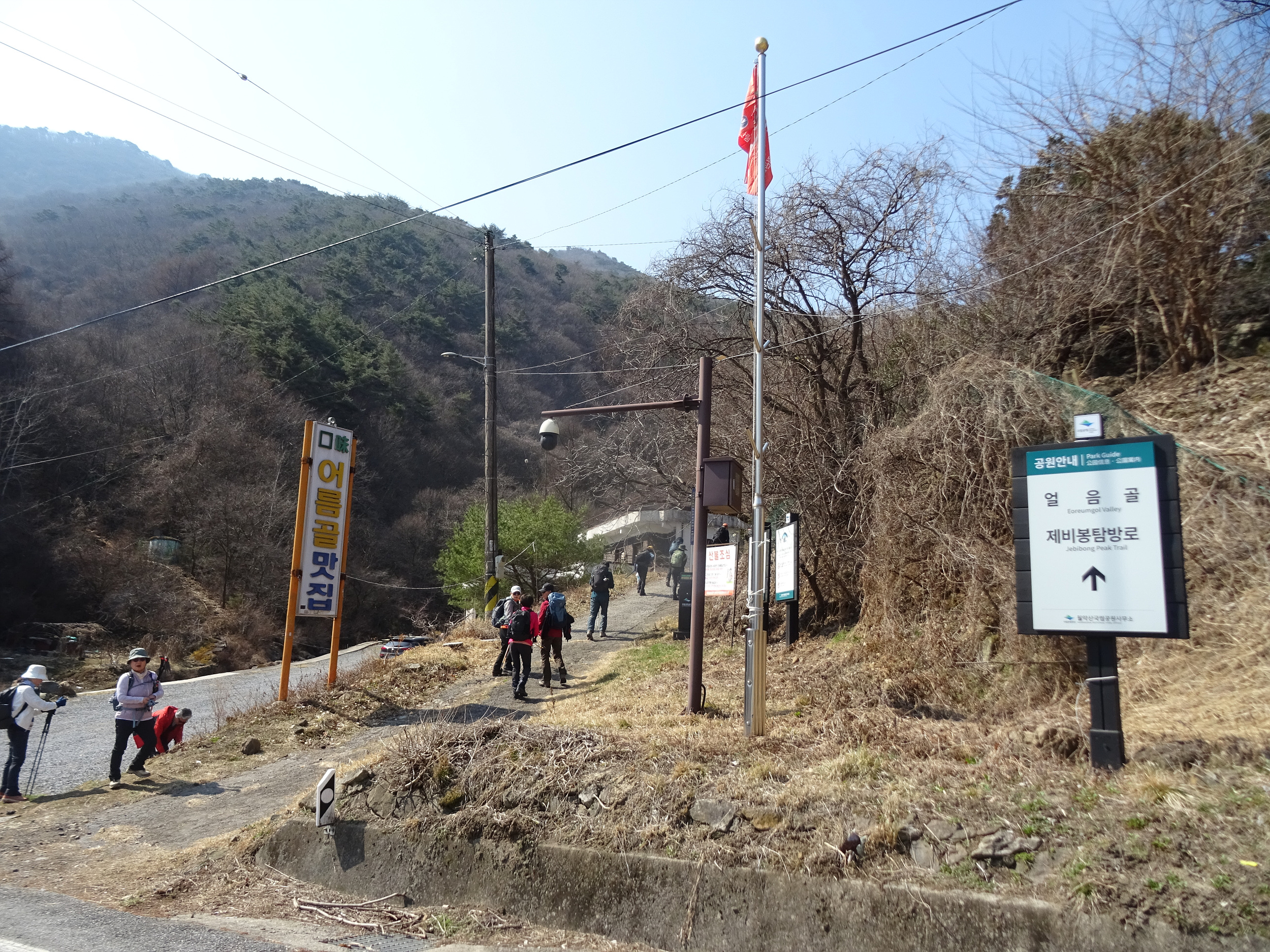 얼음골 입구 도로옆에서 하차했습니다. 얼음골 들머리에는 주차장이 없습니다.