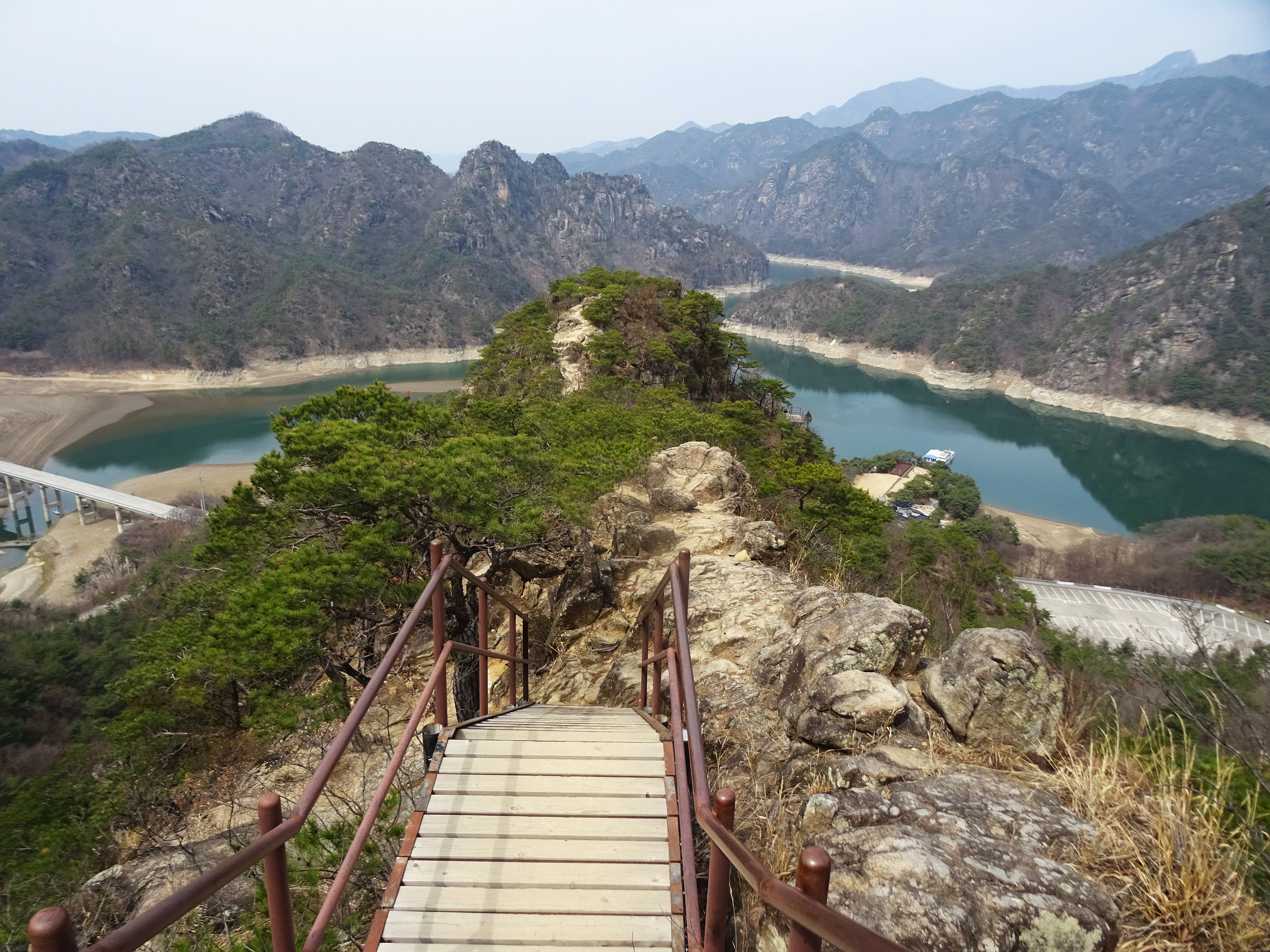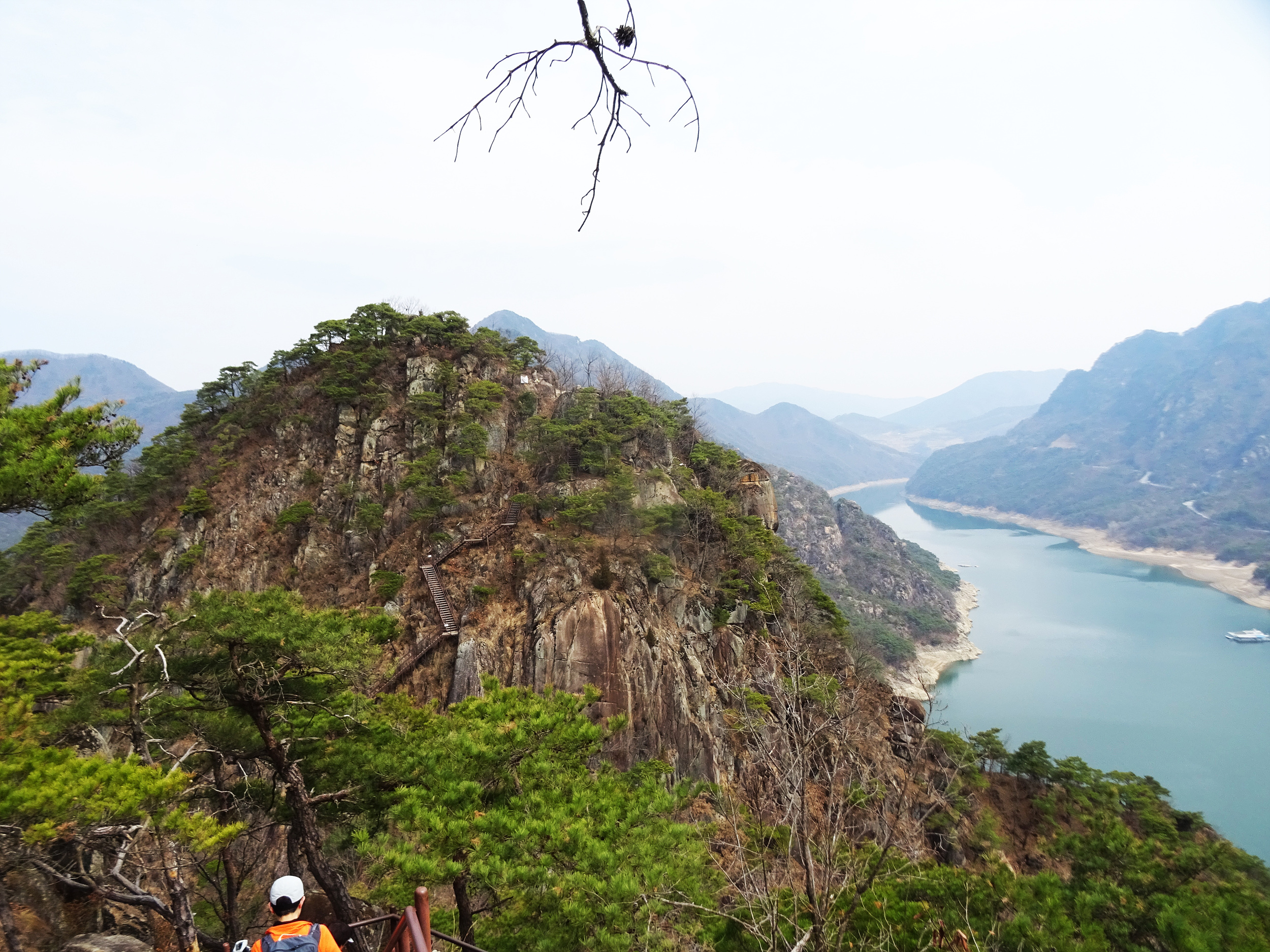 구담봉 오르는 계단에서 한숨돌리며 뒤돌아보면, 내려왔던 계단도 무척이나 가파릅니다.