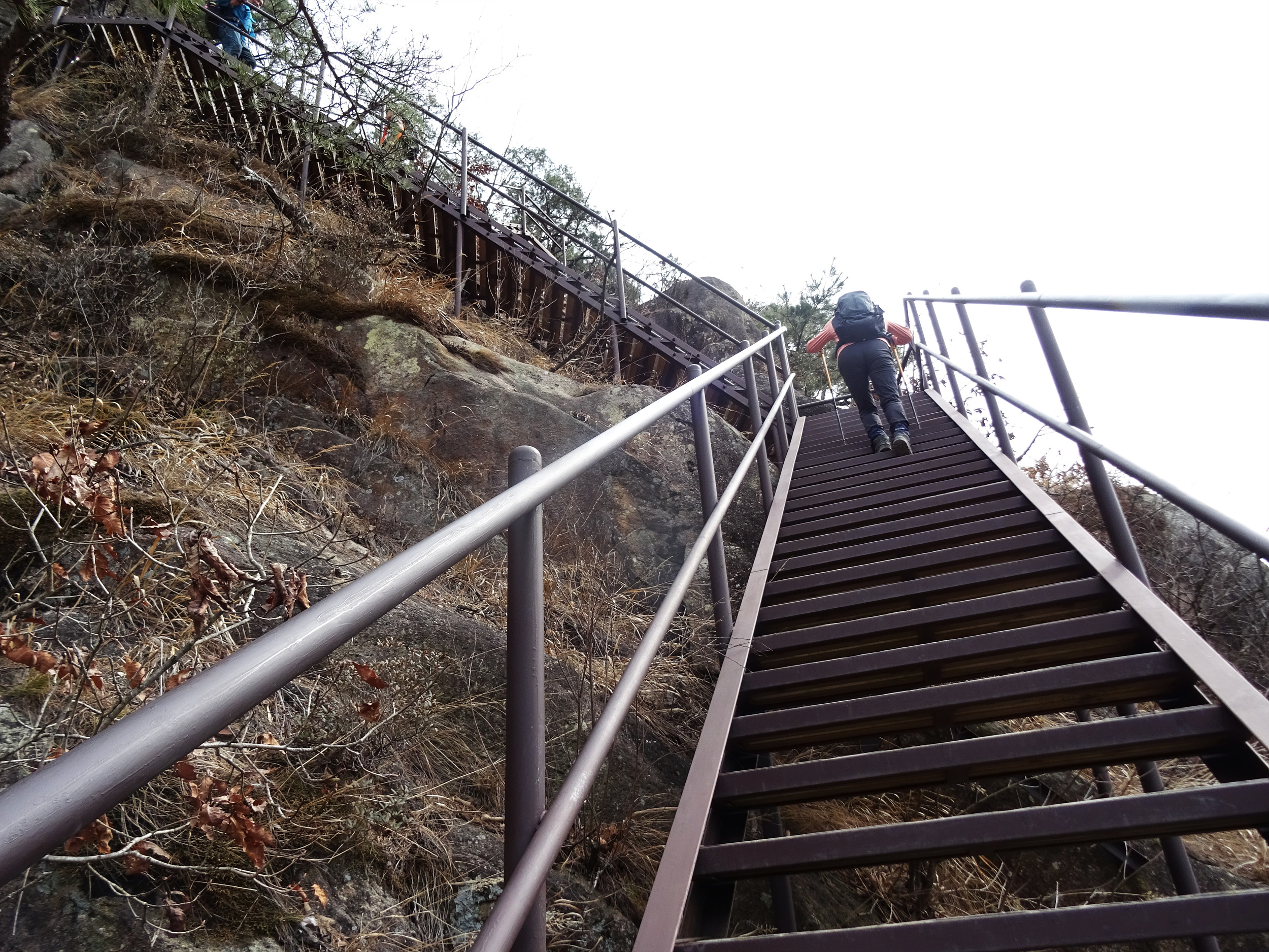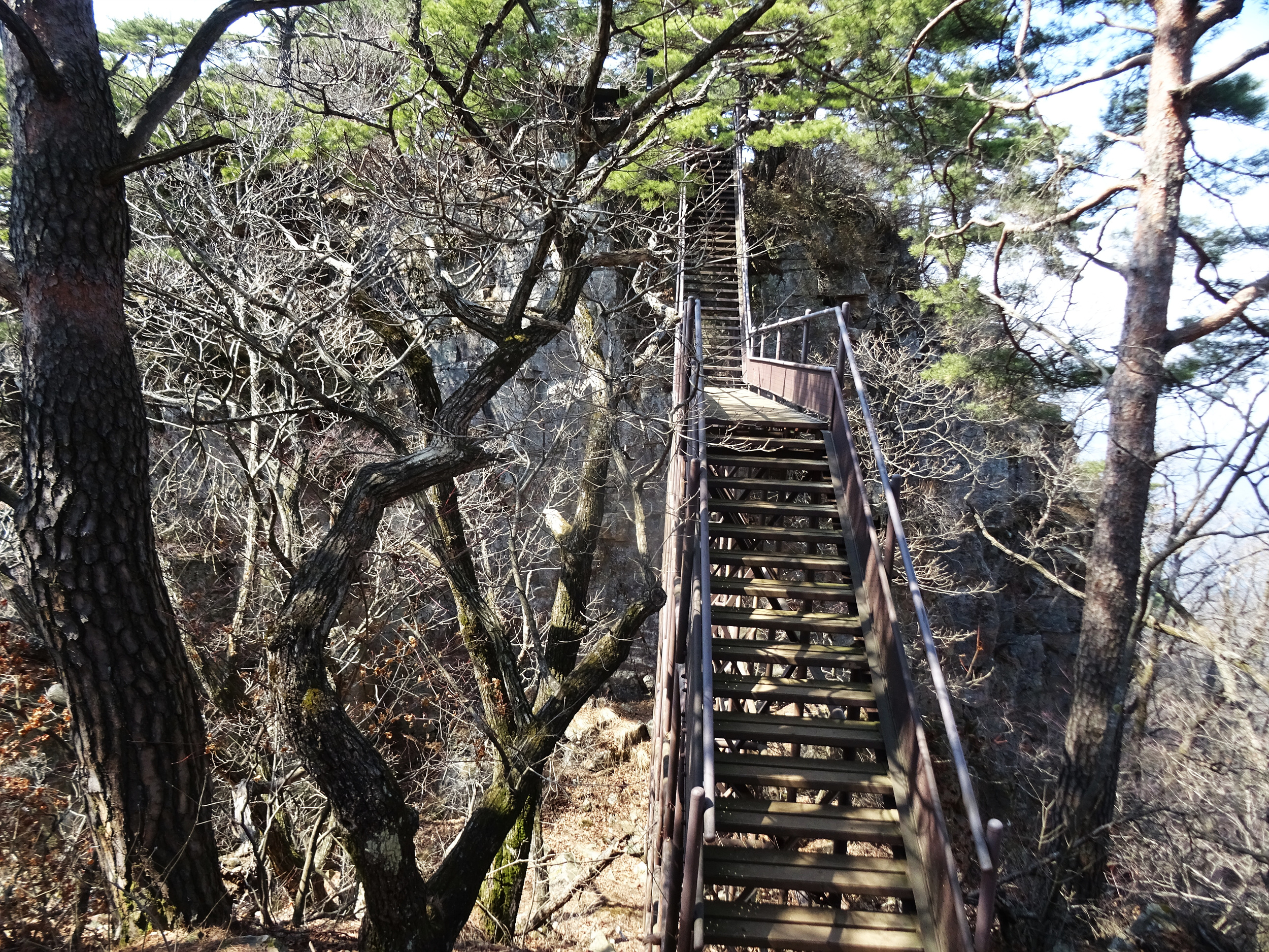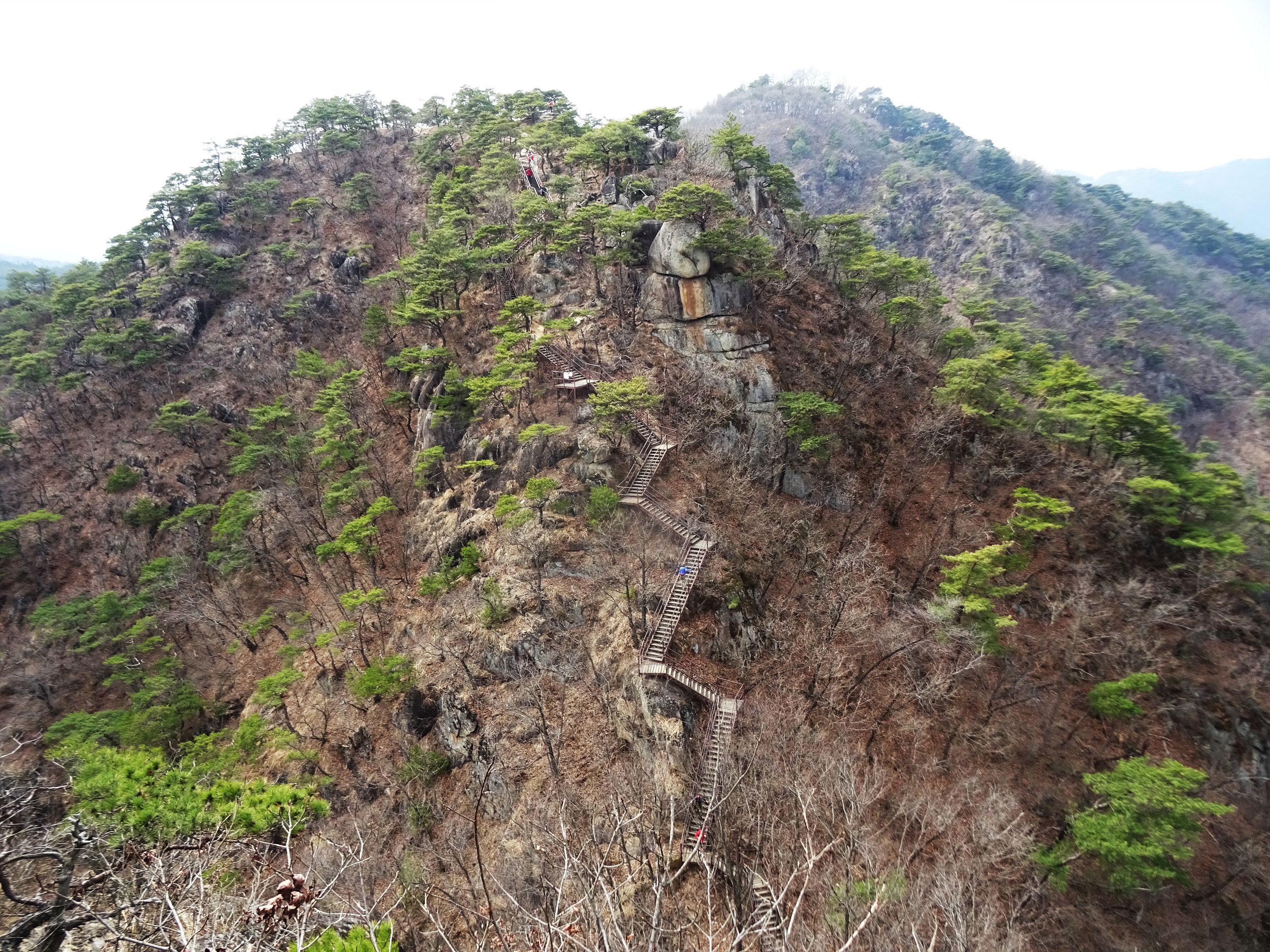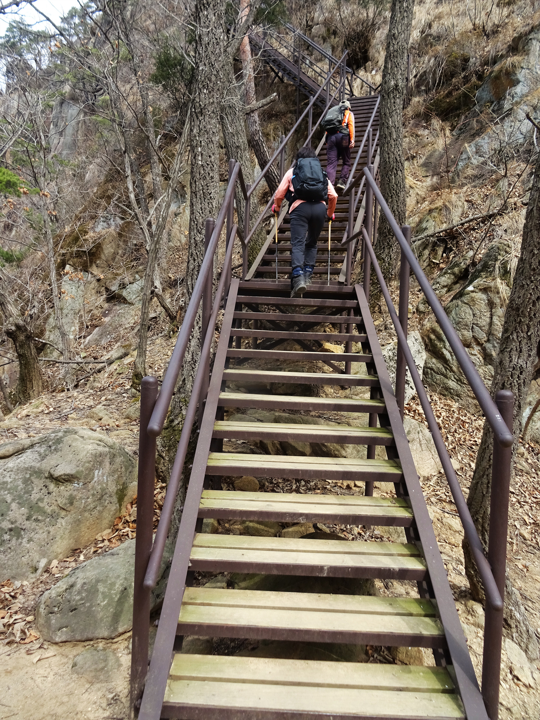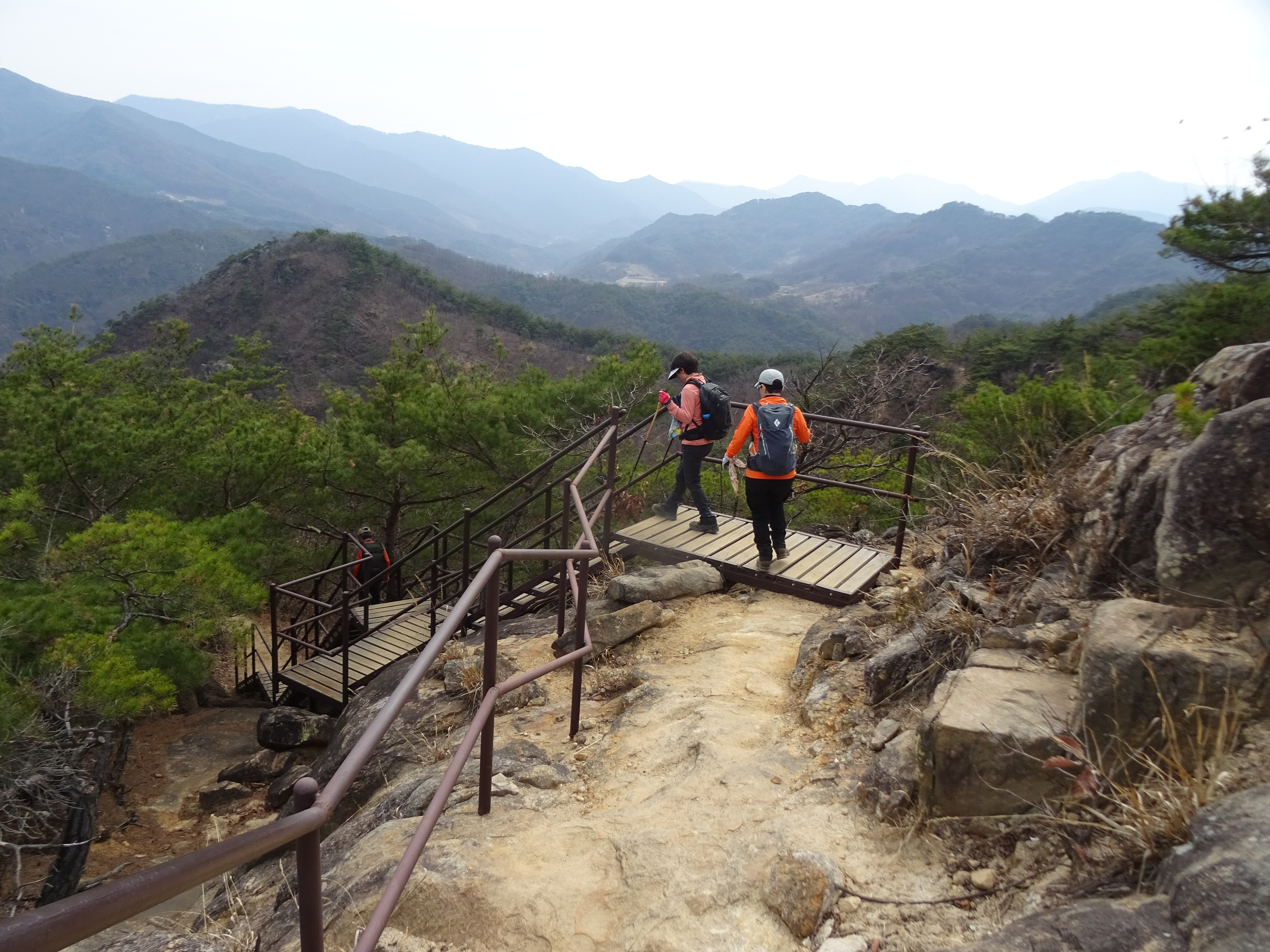 뒤돌아 본 봉우리와 계단도 멋지네요.