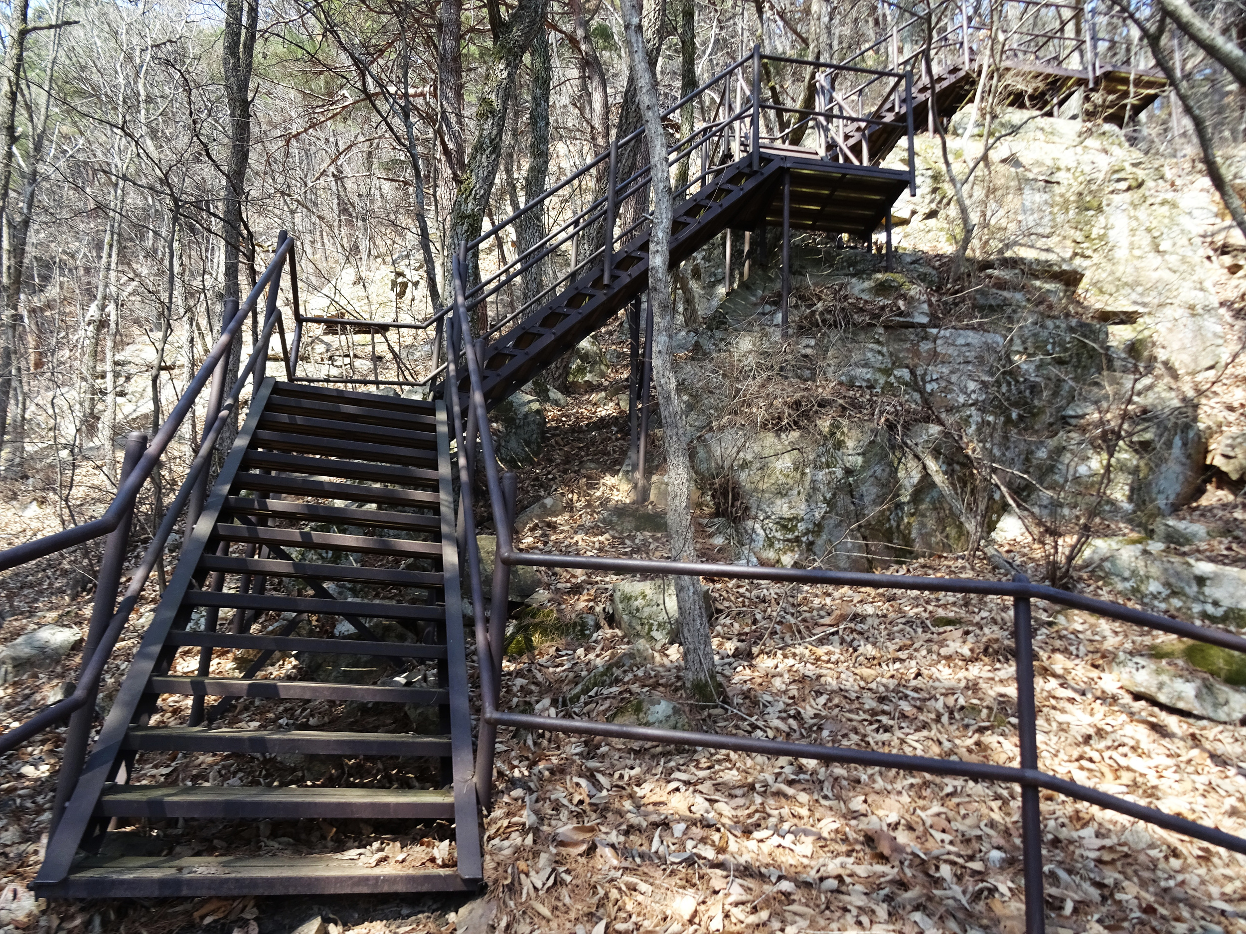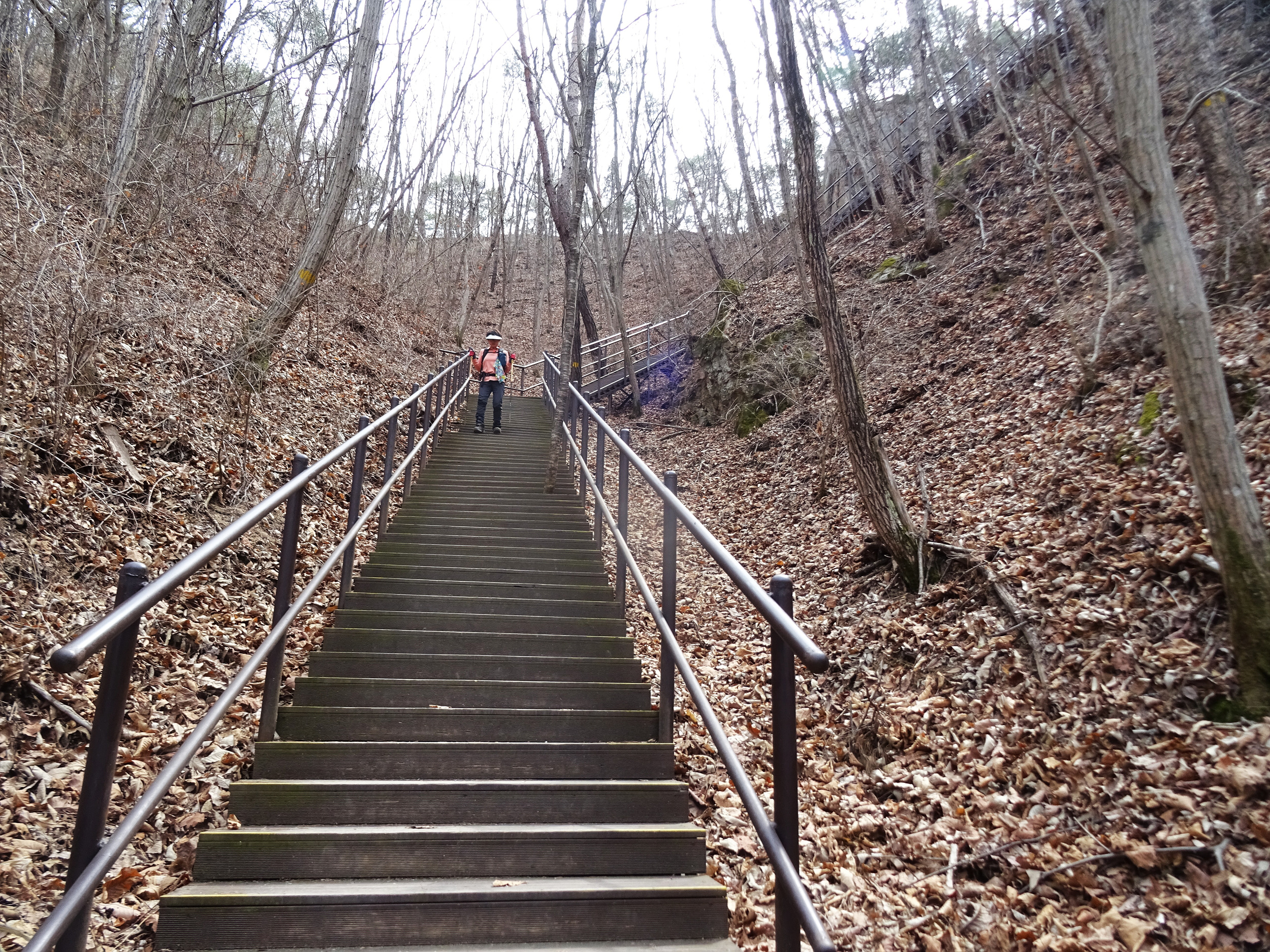가파른 계단을 내려가고, 다시 또 올라갑니다.