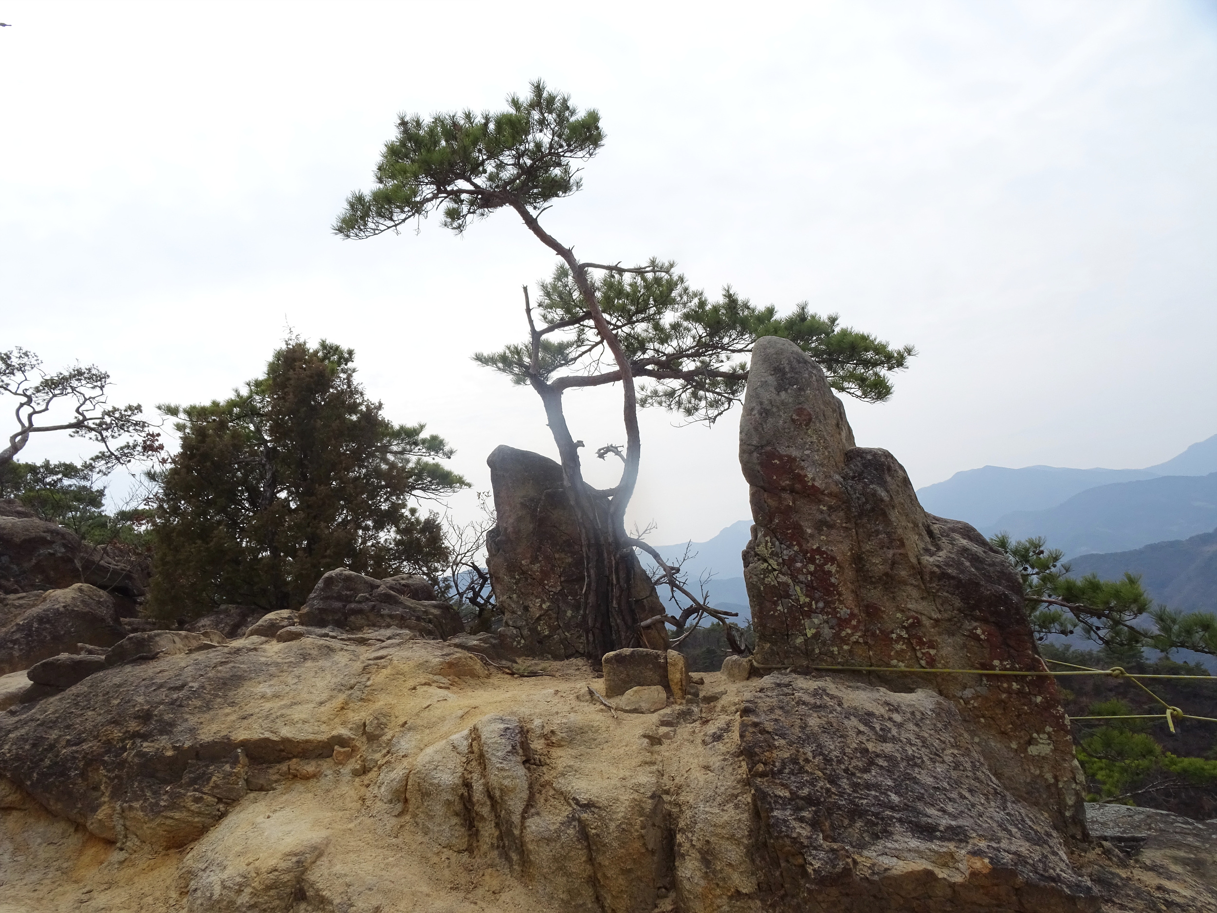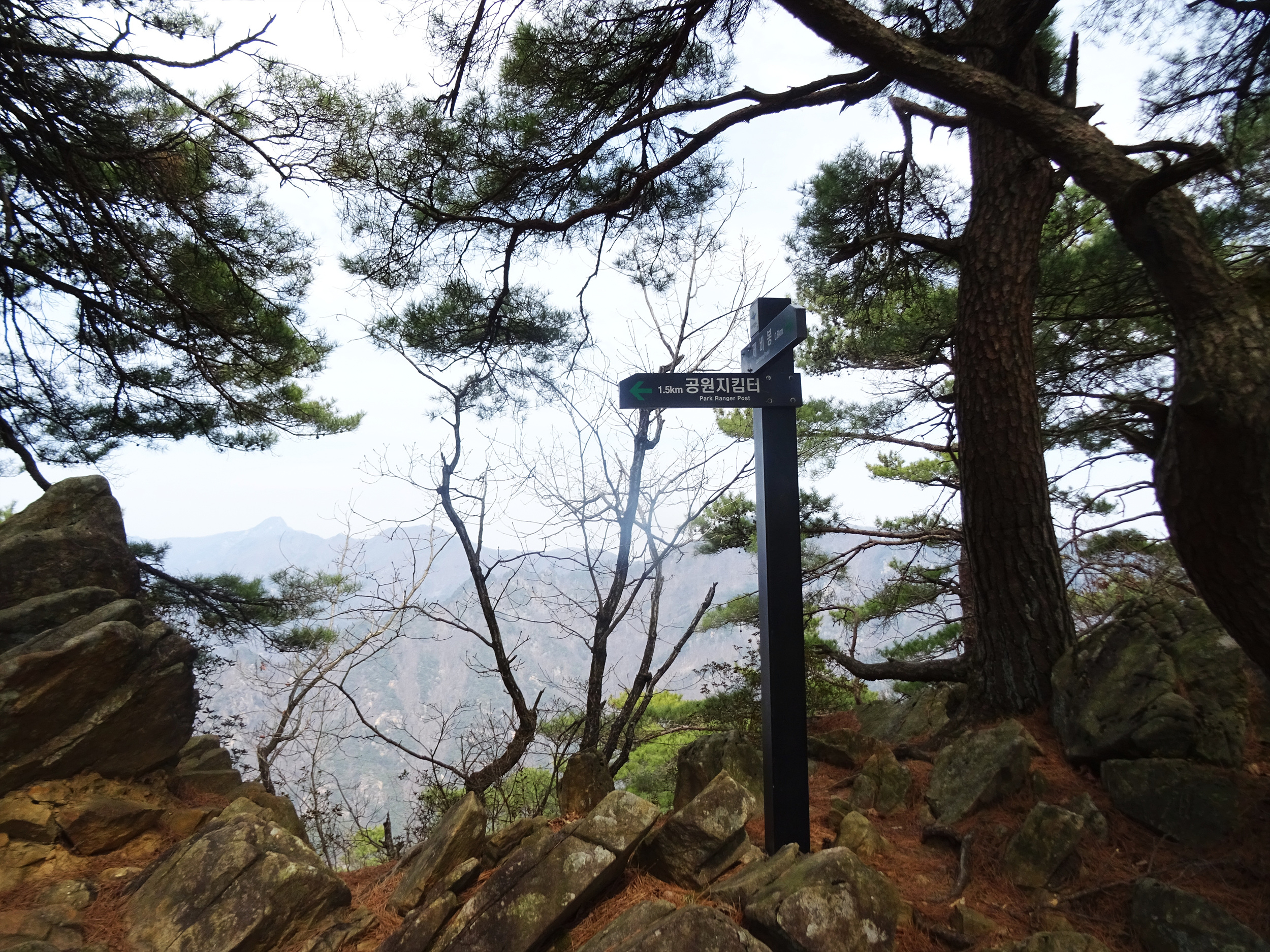 저만큼 소나무 가지 사이로 엄청 높아 보이는 산이 보입니다.