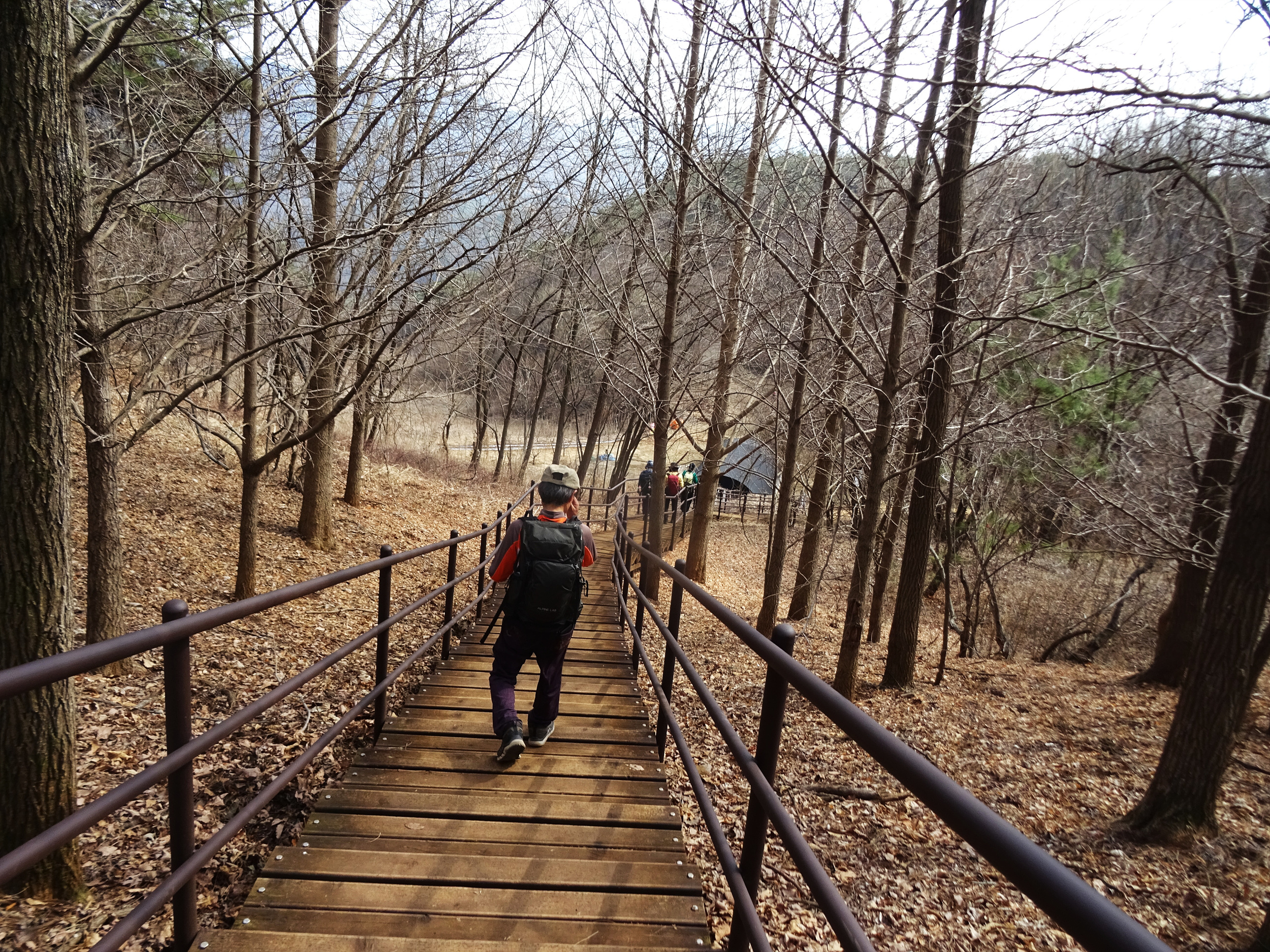 야트막한 동산을 오르는 길의 통나무 계단은 그림을 그려놓은 것 같아 보이구요.
