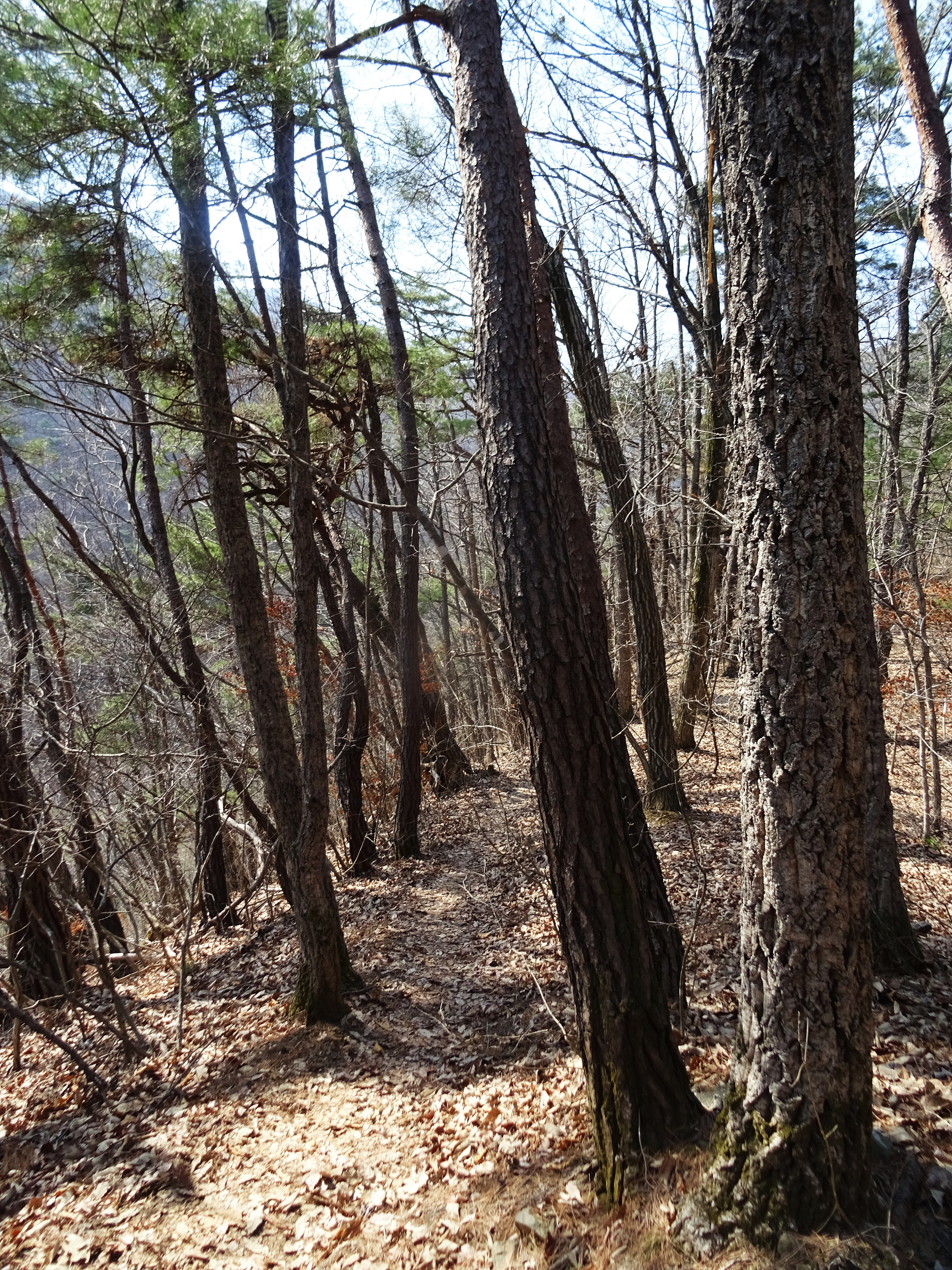 간간히 소나무도 보이긴 합니다만 설 자리를 빼앗긴 소나무들은 주변에서 점점 사라져 가고, 山 대부분은 참나무種類 나무들만 보입니다.