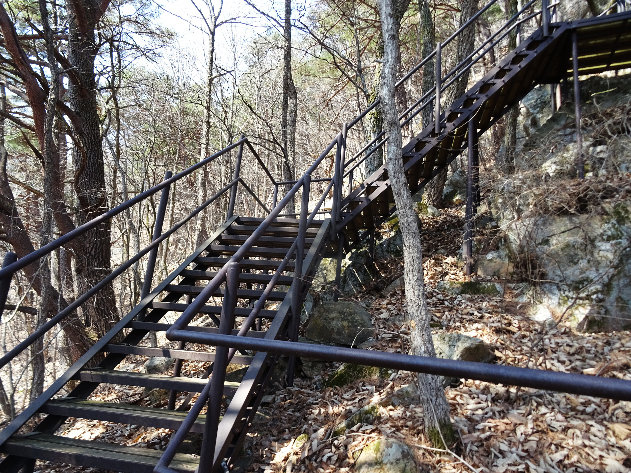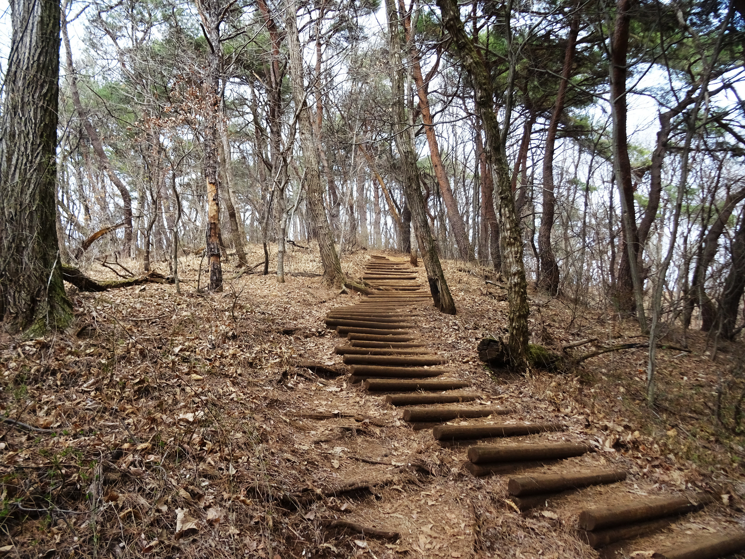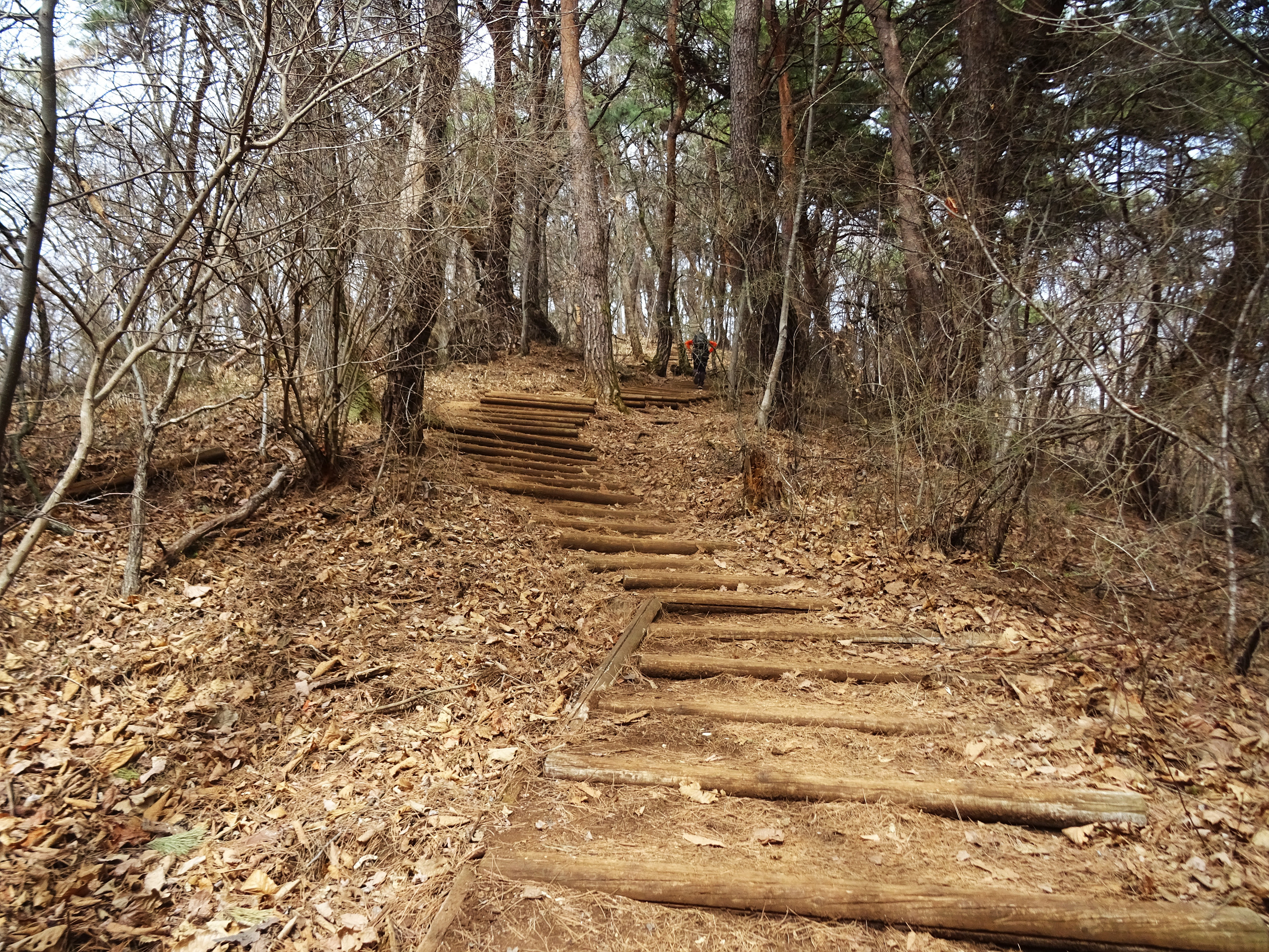 공원지킴터 직전, 이 계단을 설치하기 이전의 아래 통나무계단 사진을 보면, 그 때는 또 나름대로 운치있는 계단이었죠.