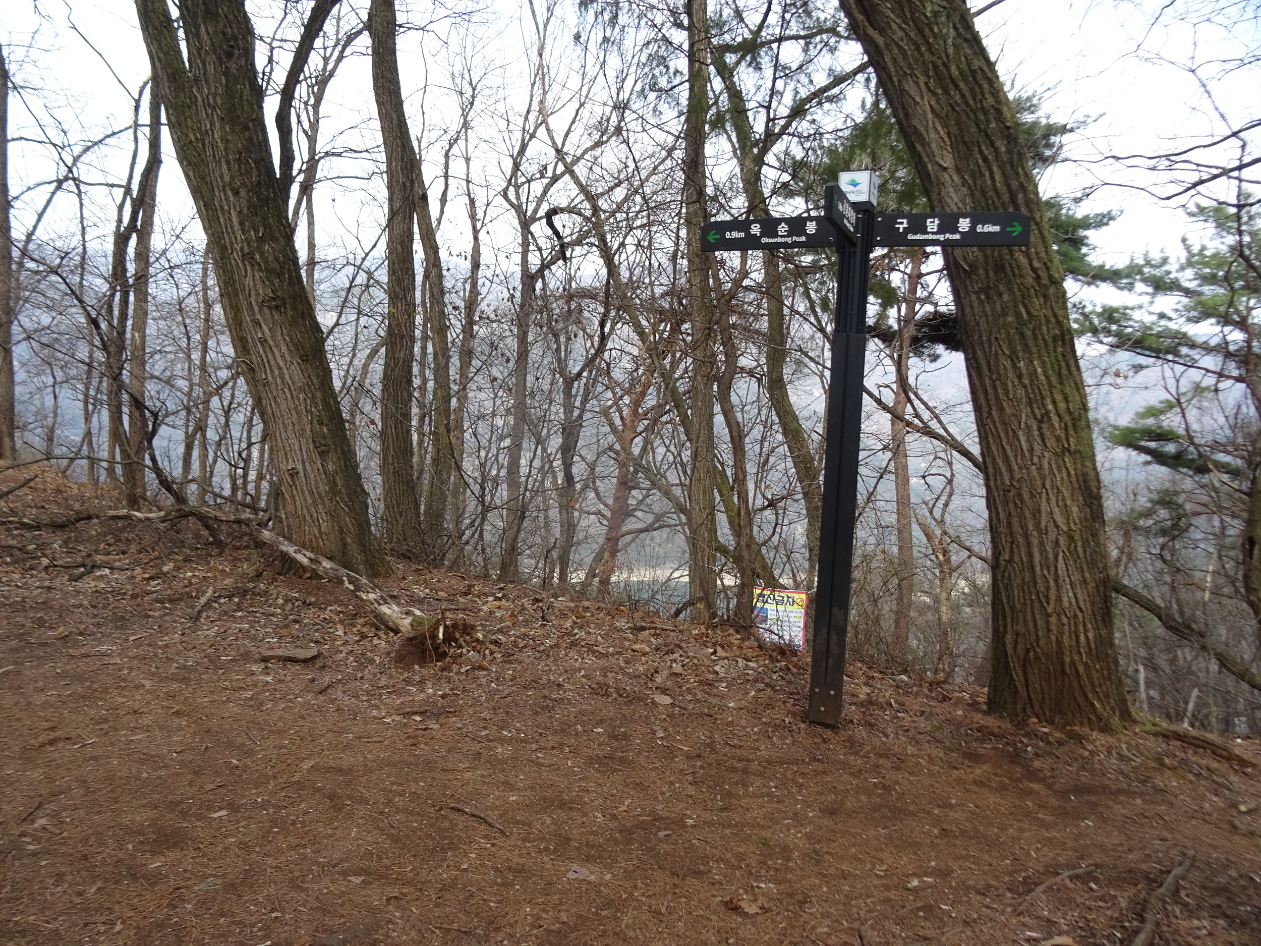 왼쪽은 옥순봉, 오른쪽은 구담봉으로 갈라지는 길.