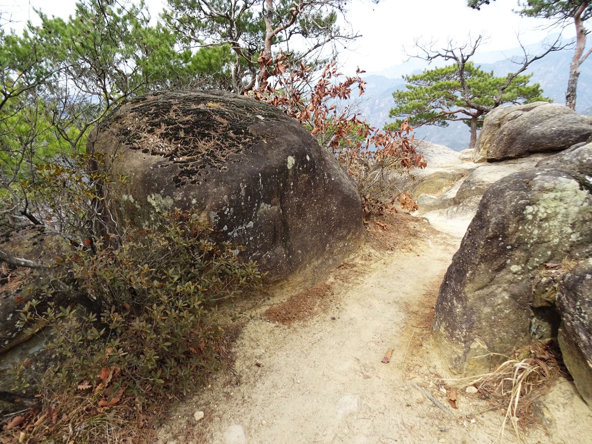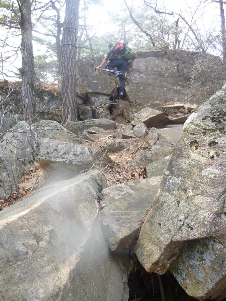등산로에 드러누운 바윗돌들을 조심스레 딛으며 지나갑니다.